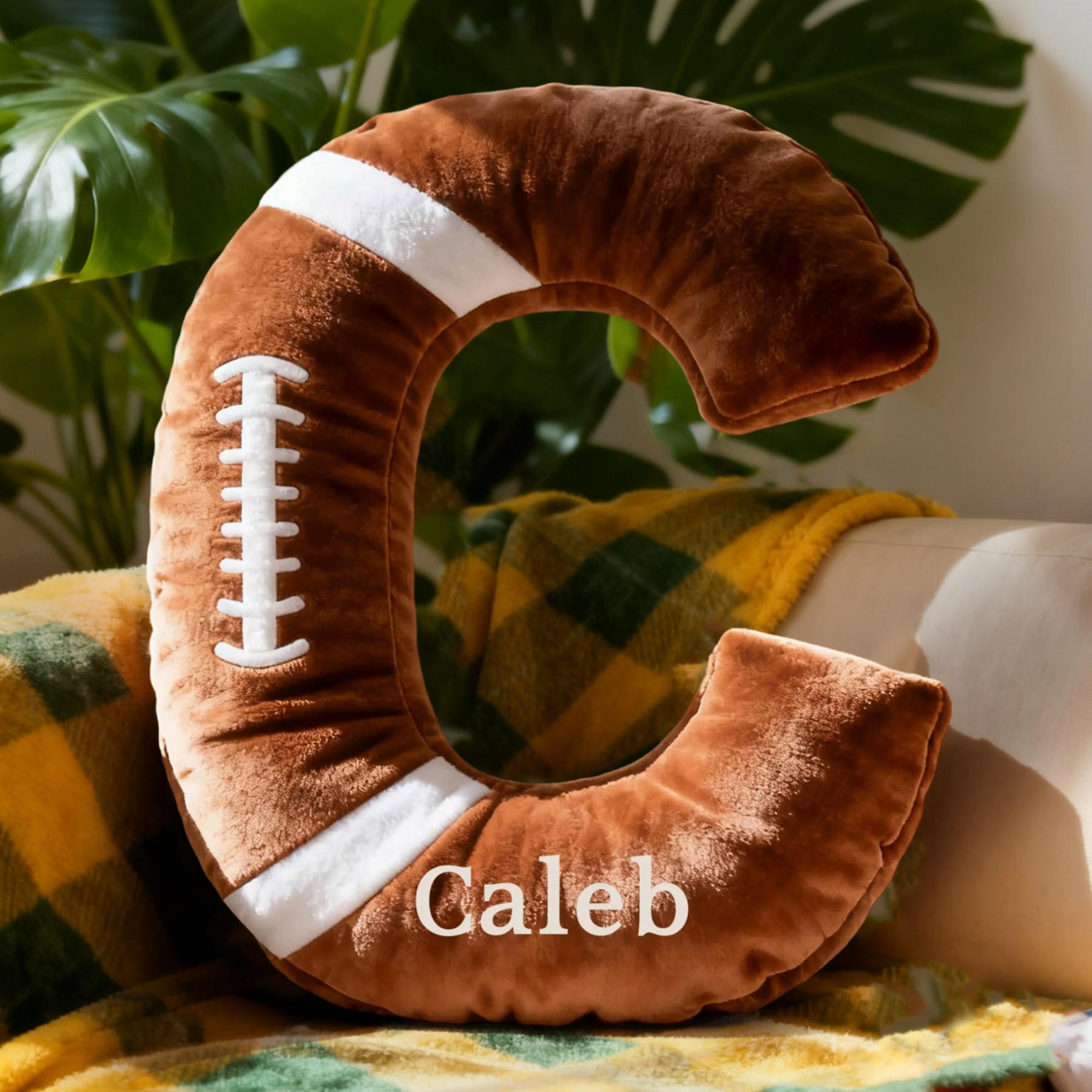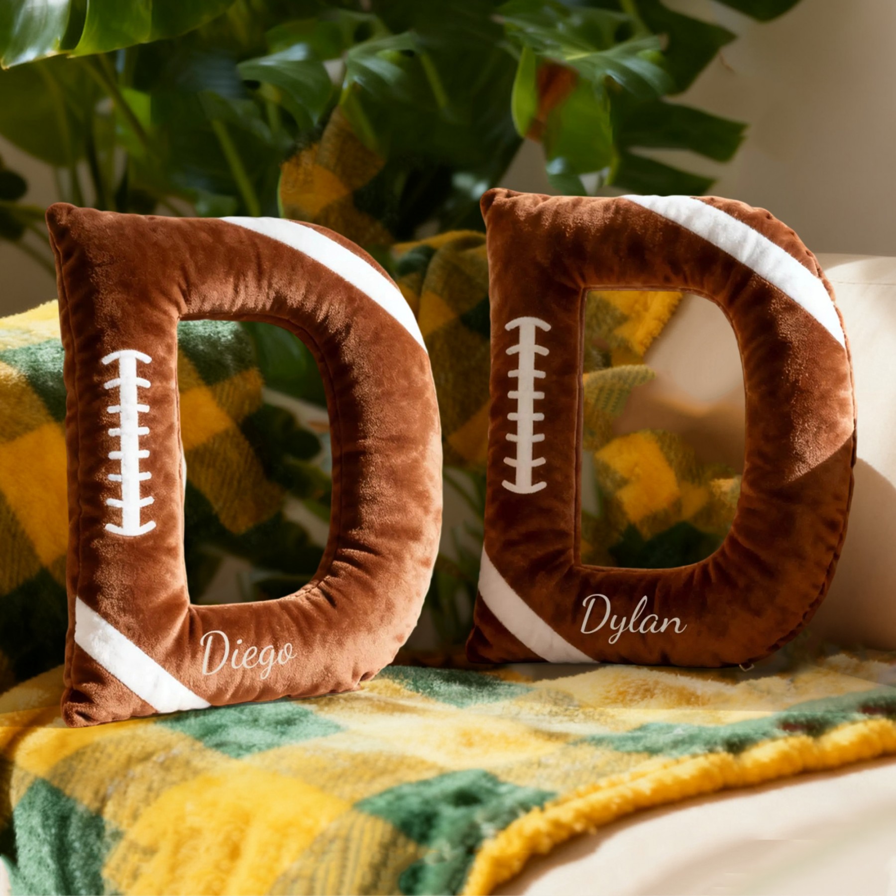 Personalized Football Themed Letter Shaped Pillow with Custom Name Football Fans Gifts Christmas Gift for Football Lover