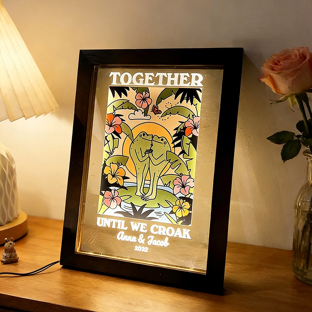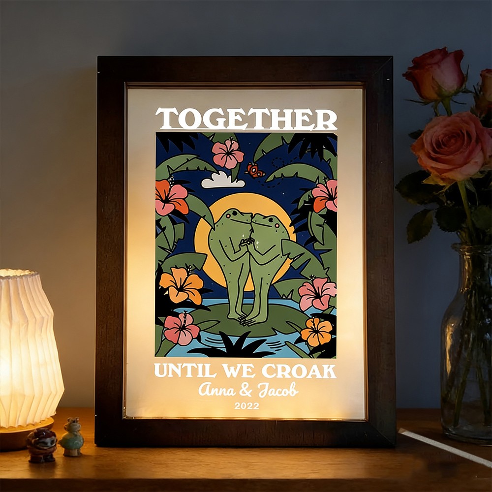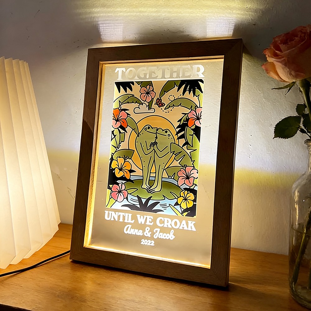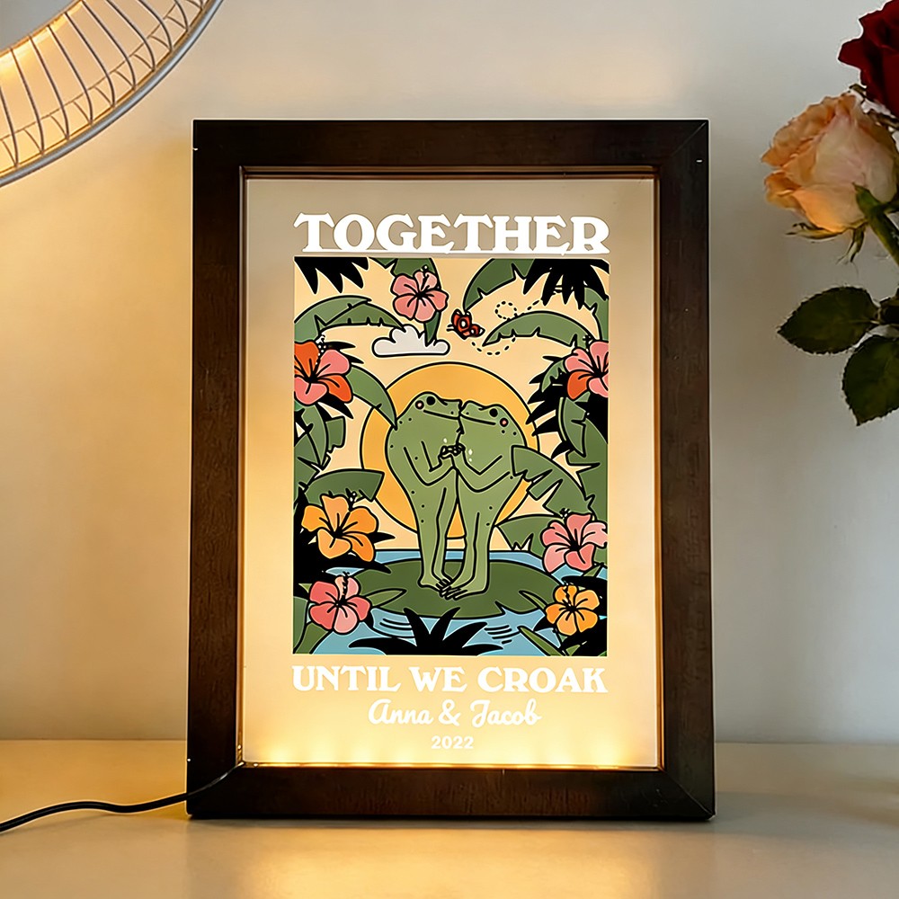 Personalized Frog Illustration Night Light Frame with Name Gift for Couples Anniversary Gift Valentine's Day Gifts