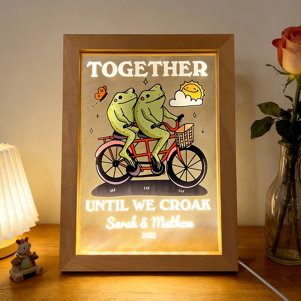 Personalized Frog Illustration Night Light Frame with Name Gift for Couples Anniversary Gift Valentine's Day Gifts