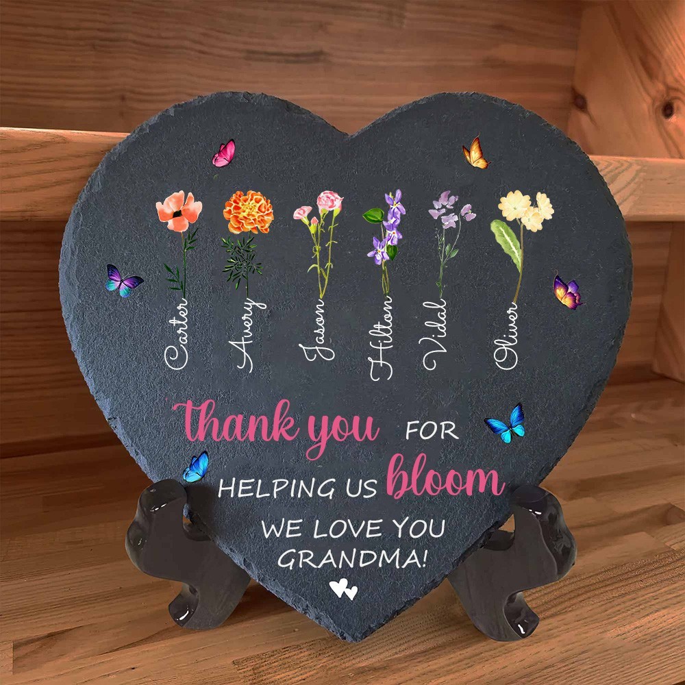 Personalized Black Birth Flower Heart Shape Plaque For Grandma,Mom