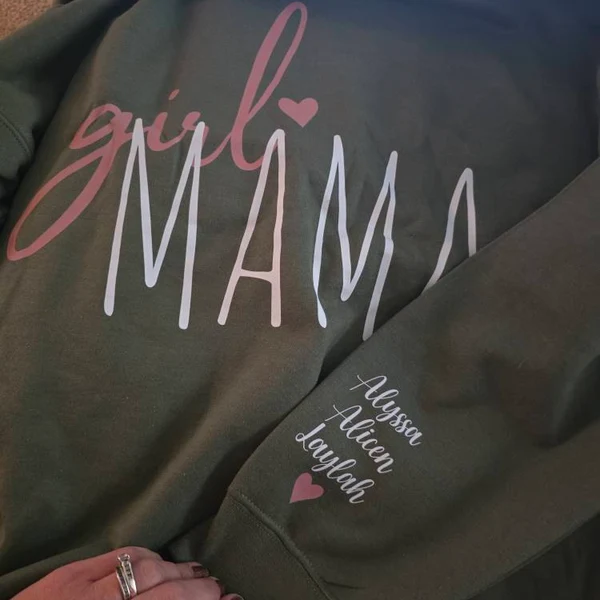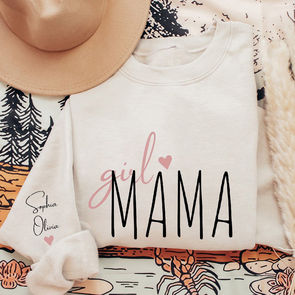 Personalized Girl Mama Sweatshirt with Kids Names on Sleeve New Mom Gift Momma Birthday Gifts Mother's Day Gift Ideas