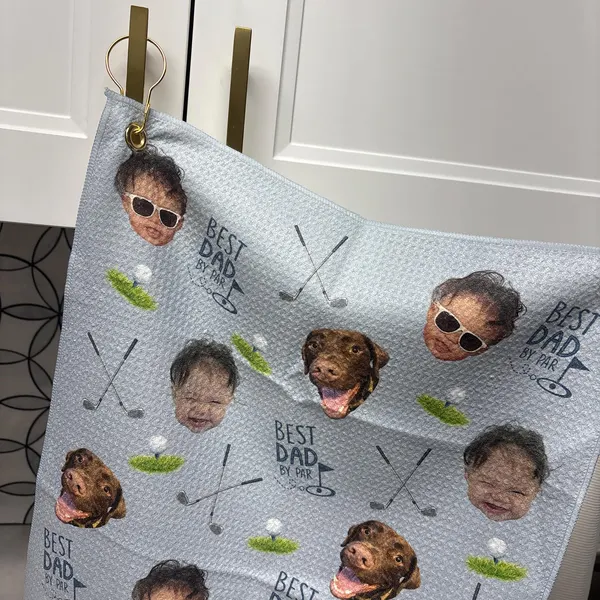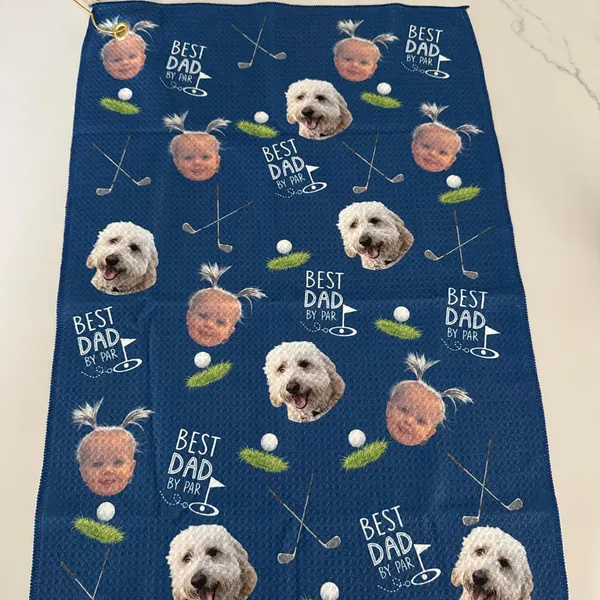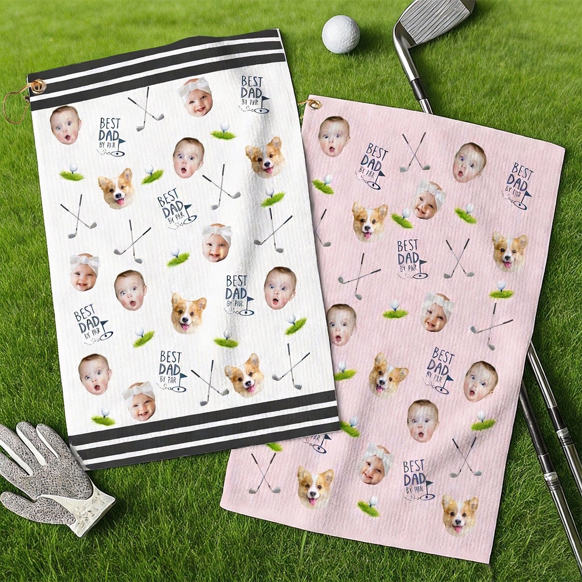 Personalized Golf Towel with Kids Photo Best Dad By Par Towel Unique Gift for Golf Lovers Gifts for Dad Husband