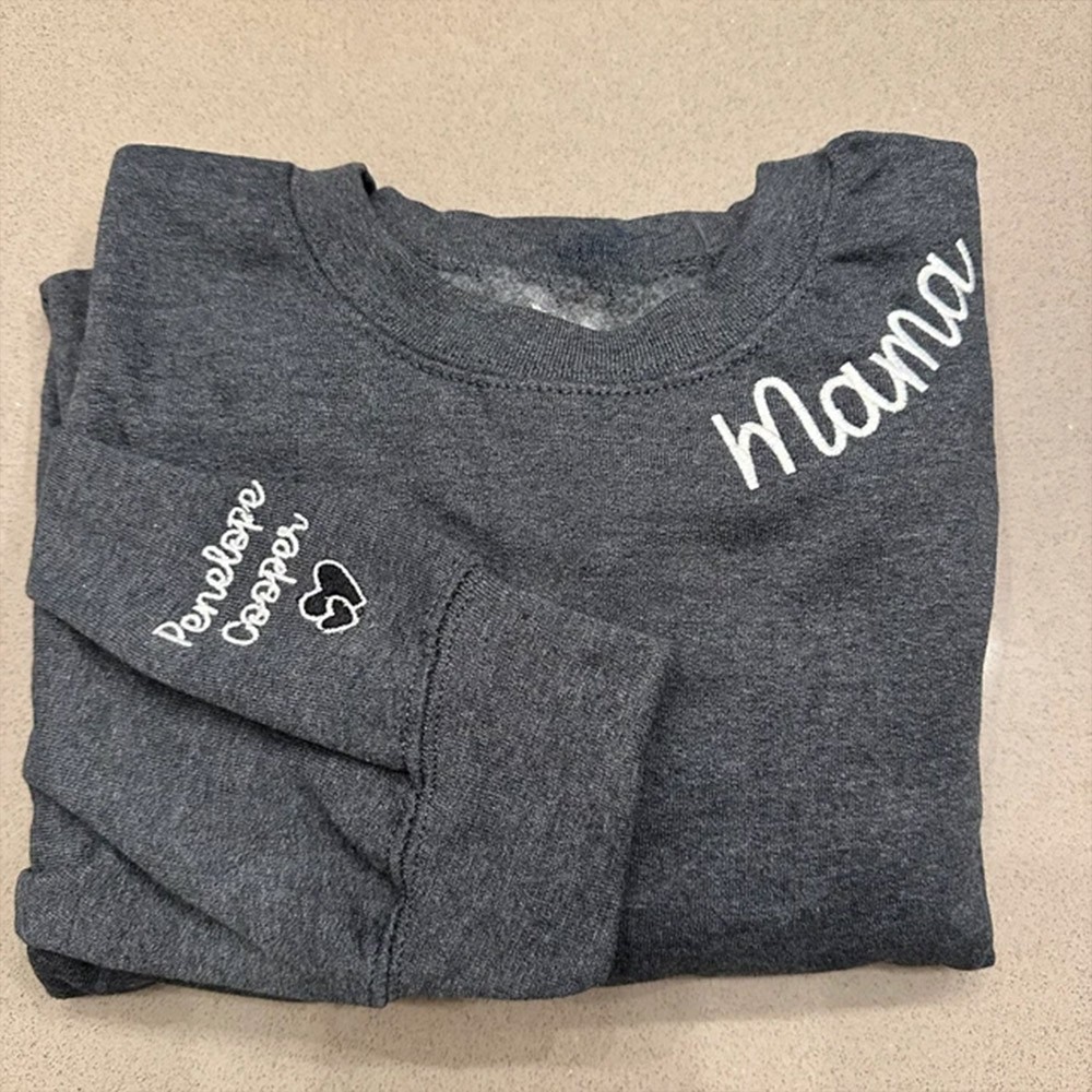 Personalized Grandma Embroidered Sweatshirt Hoodie With Grandkids Names On The Sleeve Mother's Day Gift Ideas