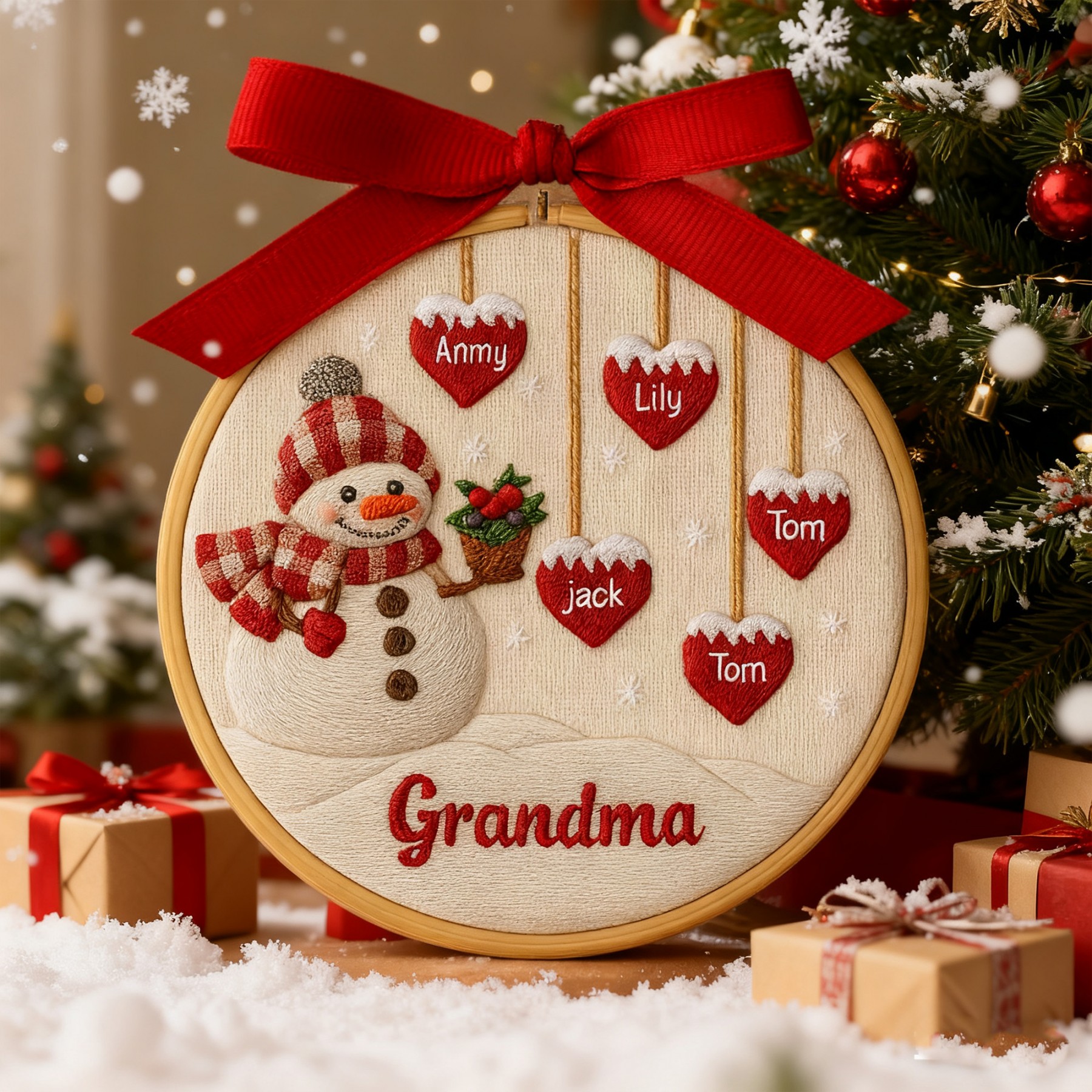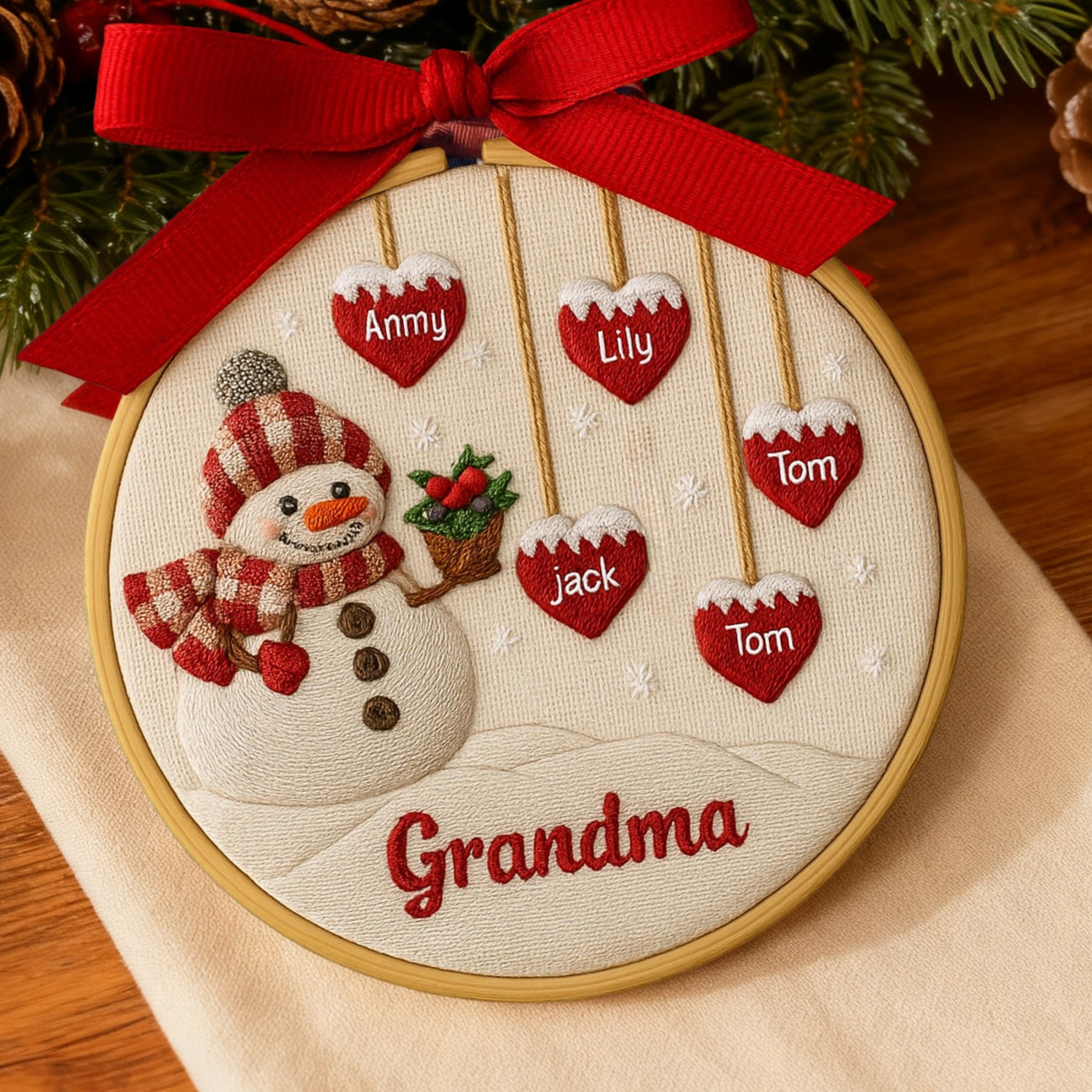 Personalized Grandma Embroidery Christmas Hoop Ornament with Kids Names Christmas Gifts for Mom Grandma