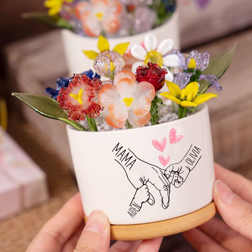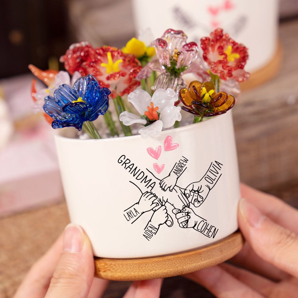 Personalized Grandma's Garden Mini Glass Birth Month Flower Pot Keepsake Gifts for Mom Grandma Unique Mother's Day Gift