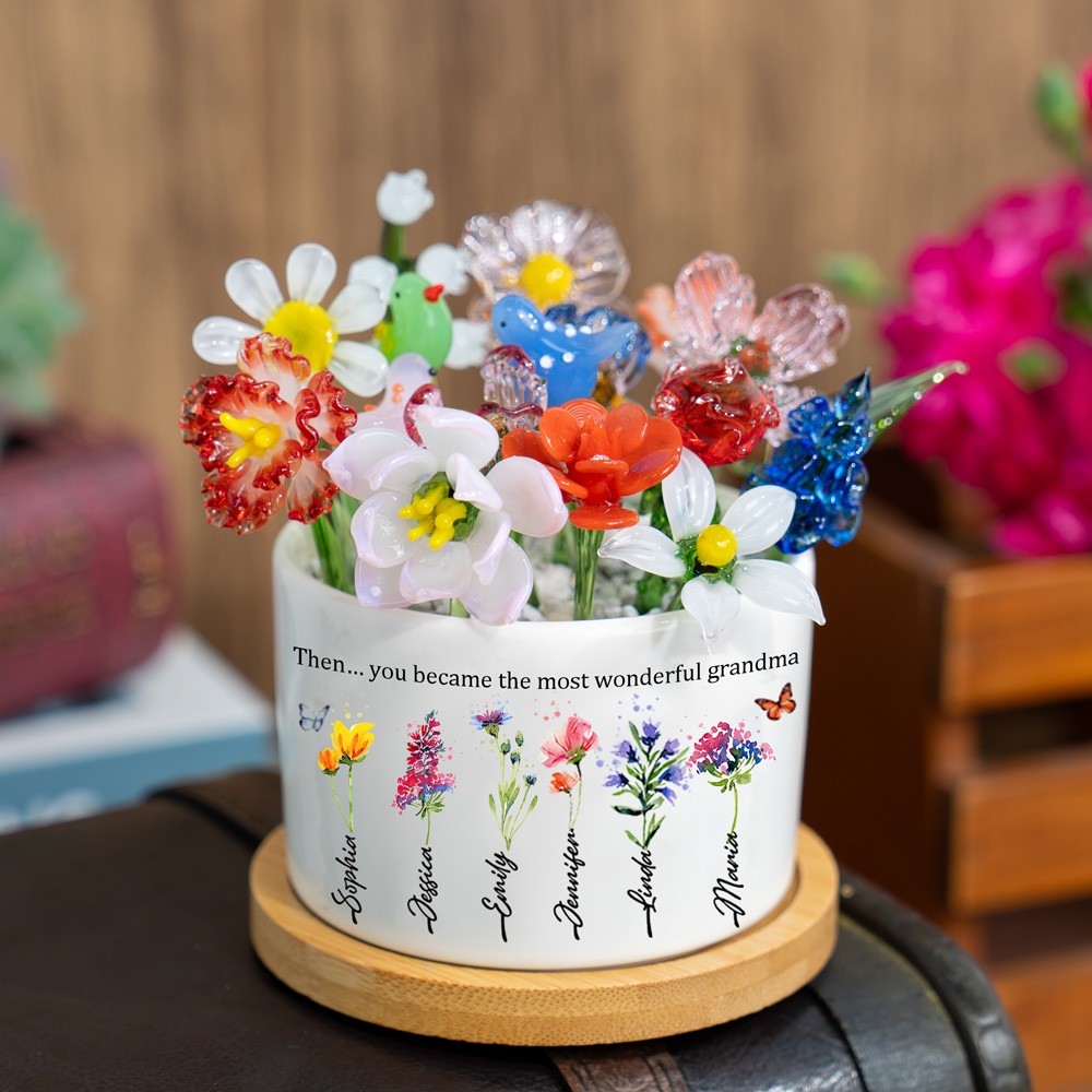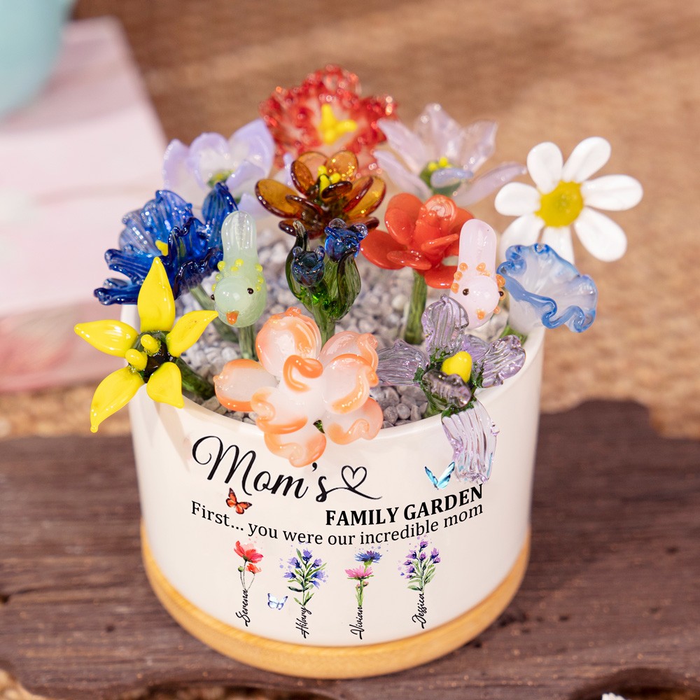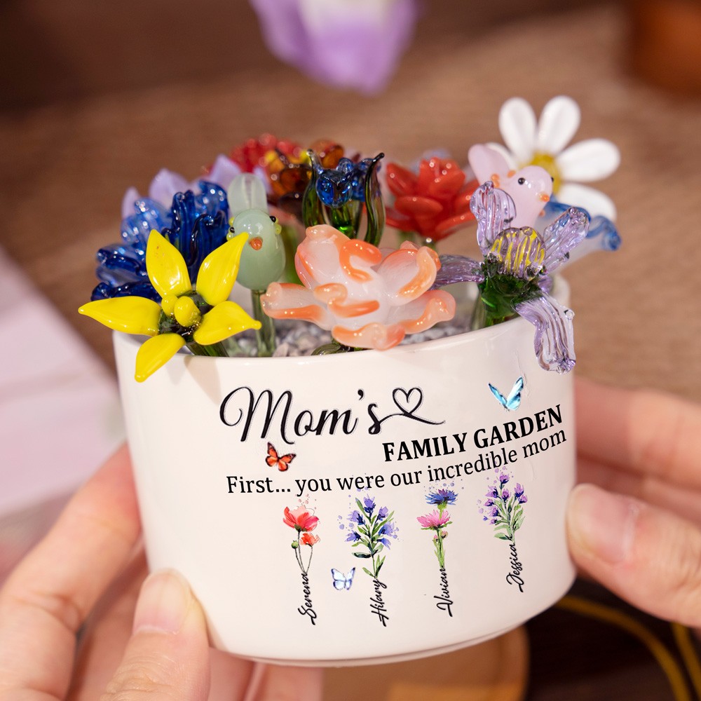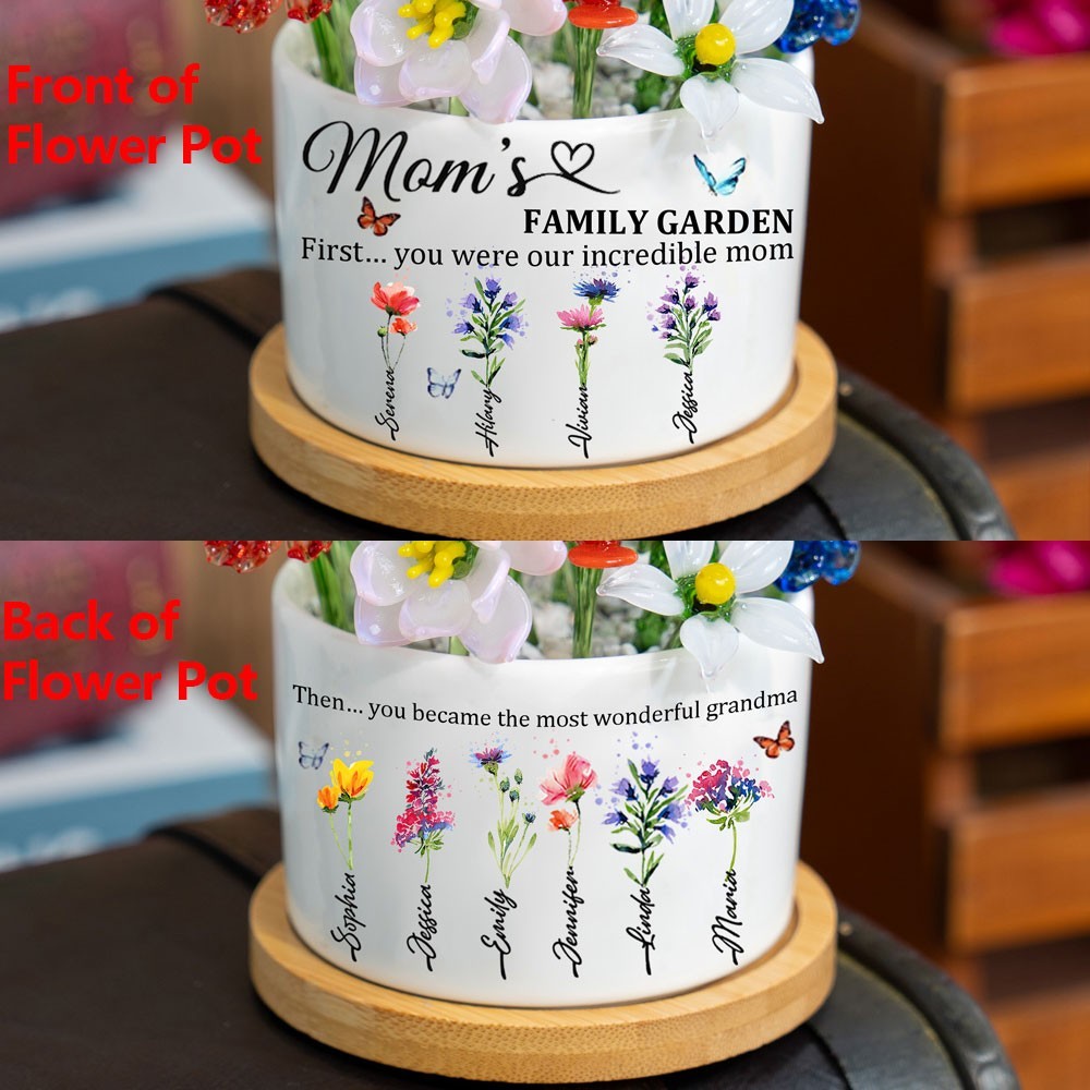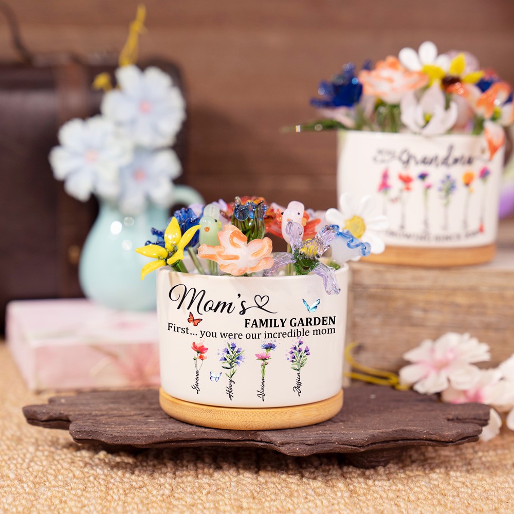 Personalized Grandma's Garden Mini Glass Birth Month Flower Pot Keepsake Gifts for Mom Grandma Unique Mother's Day Gift