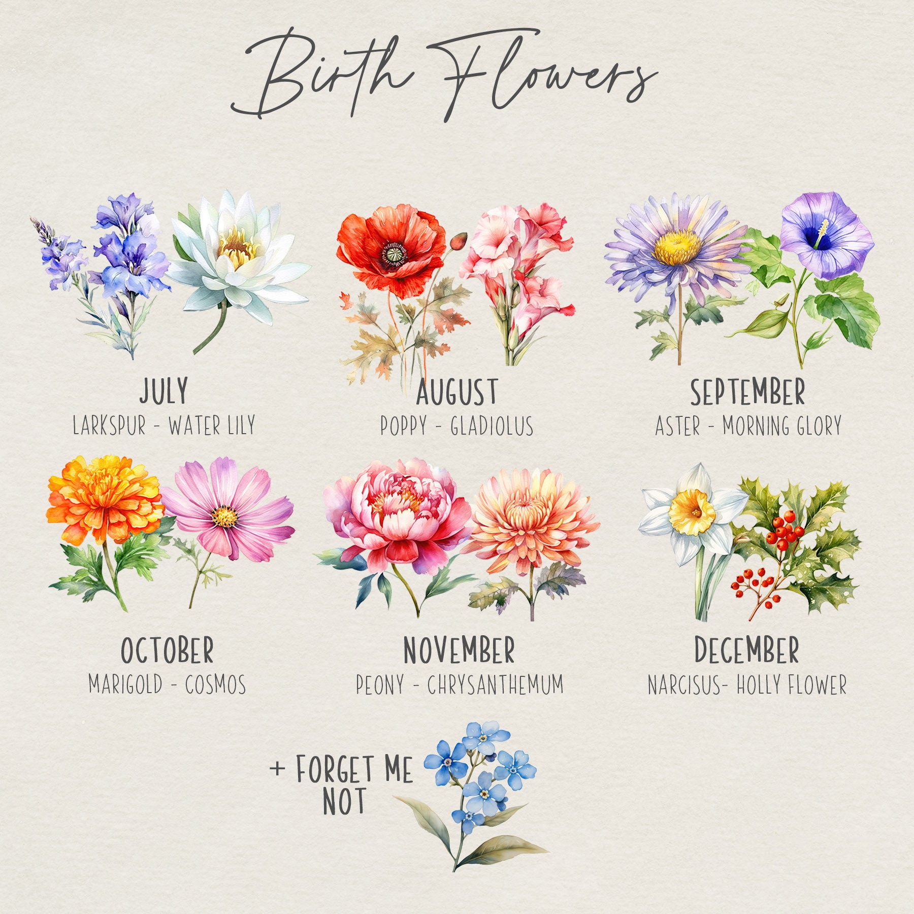 -- Select 7th Flower Type -- January-Carnation January-Snowdrop February-Primrose February-Violet March-Daffodil March-Cherry Blossom April-Sweet Pea April-Daisy May-Lily of the Valley May-Hawthorn June-Honeysuckle June-Rose July-Larkspur July-Water Lily August-Poppy August-Gladiolus September-Aster September-Morning Glory October-Marigold October-Cosmos November-Chrysanthemum November-Peony December-Holly Flower December-Narcissus Loss Miscarriage-Forget me Not