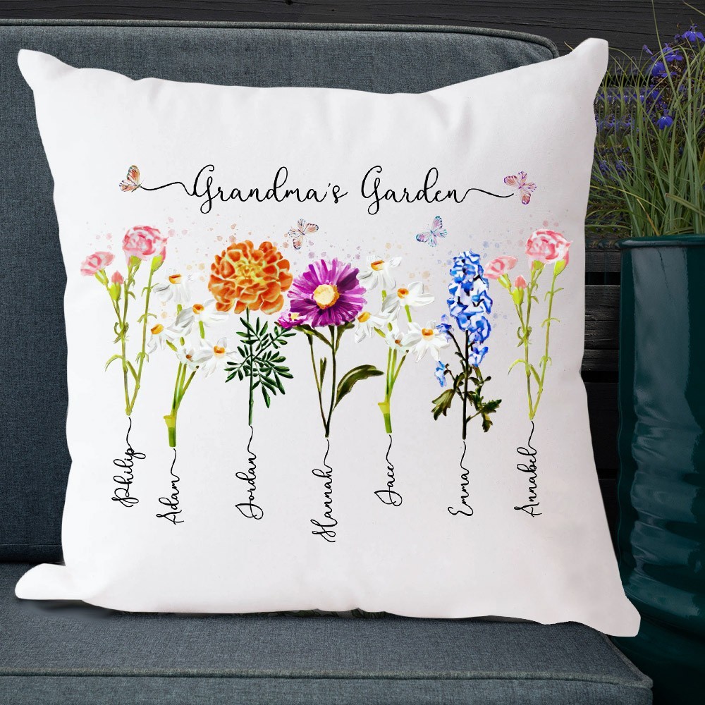 This personalized birth month flower pillow is the perfect gift for mom or grandma. This pillow makes the perfect gift to show off the garden of children or grandchildren. This pillow comes in natural coloring which goes with any decor! The pillow case can be purchased alone, or you can order it with the pillow stuffing already inside the personalized case.