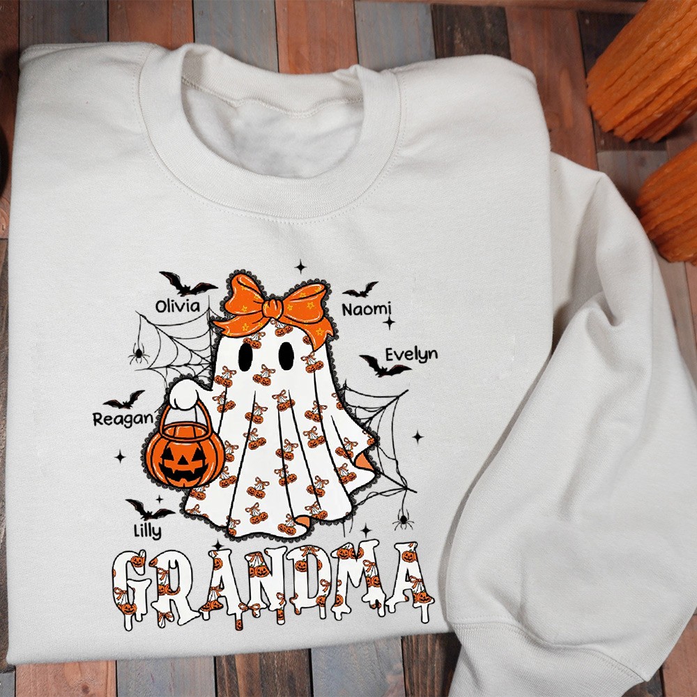 Personalized Halloween Grandma Cute Ghost Sweatshirt with Grandkids Names Gift for Grandma Mom Halloween Gift