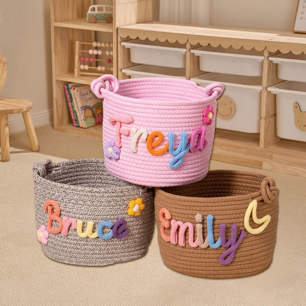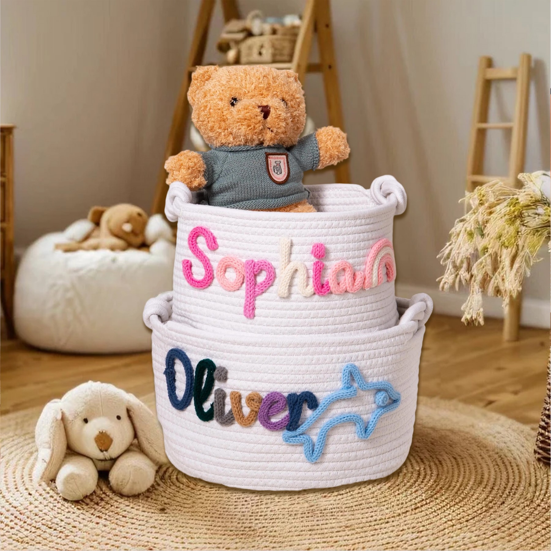 Personalized Handmade Baby Basket with Name Toys Storage Basket Baby Shower Gift Newborn Gift