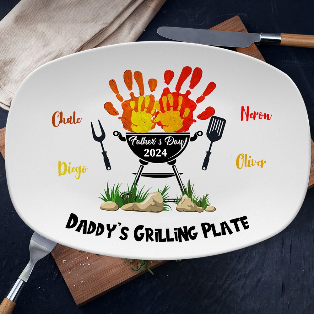 Personalized Handprint BBQ Grilling Platter with Kids Names Father's Day Gift
