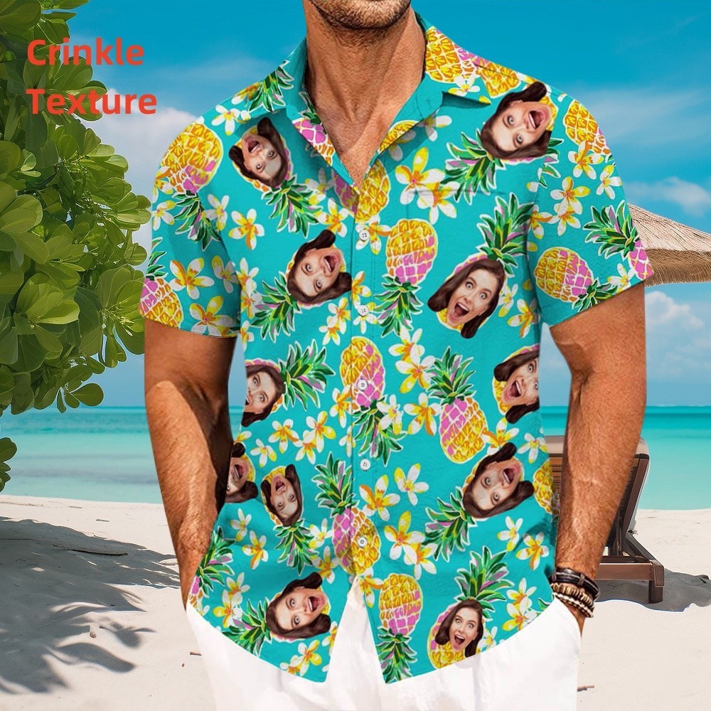 Personalized Hawaiian Face Shirt With Flower Pineapple Aloha Shirt Best Summer Vacation Gift For Him
