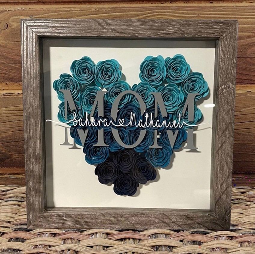 Personalized Heart Flower Shadow Box with Names for Mom,Grandma