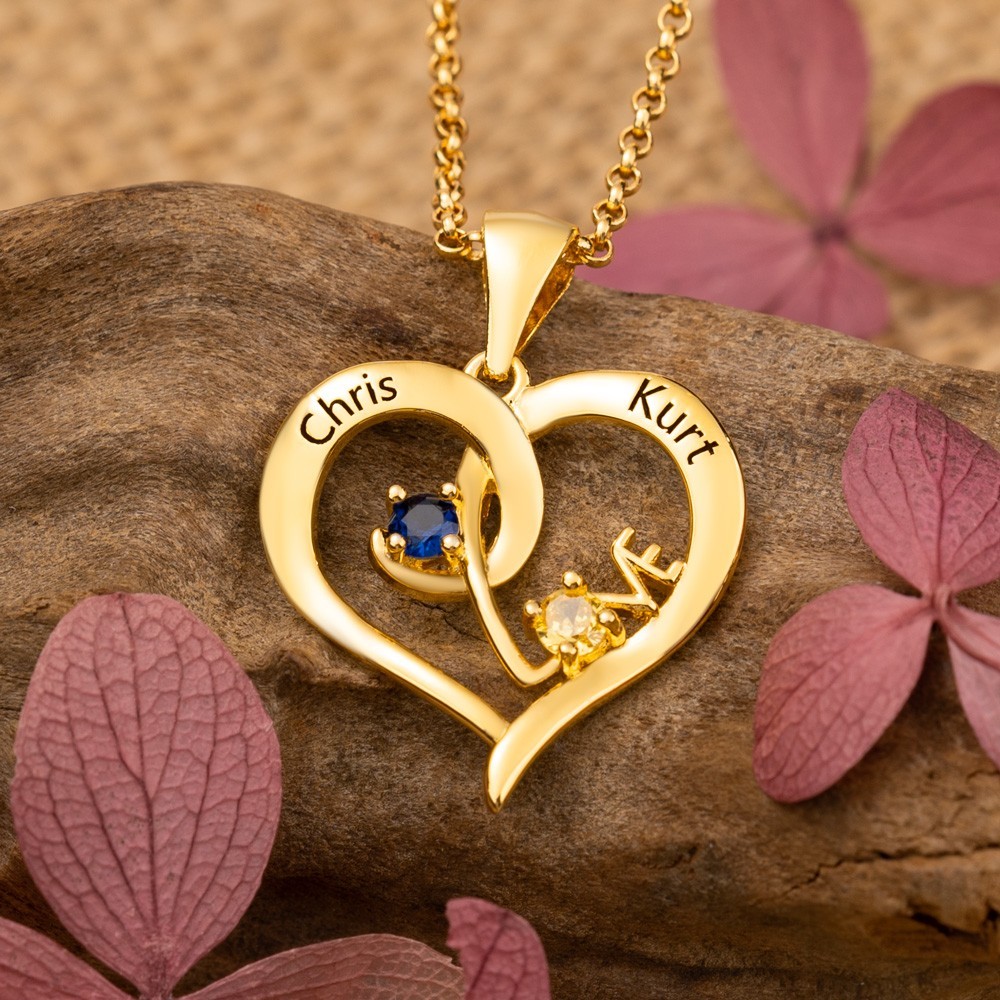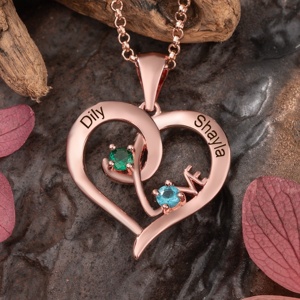 Personalized Heart Shaped Engraved Names Necklace with Birthstones Meaningful Anniversary Gift Ideas Unique Gifts For Her