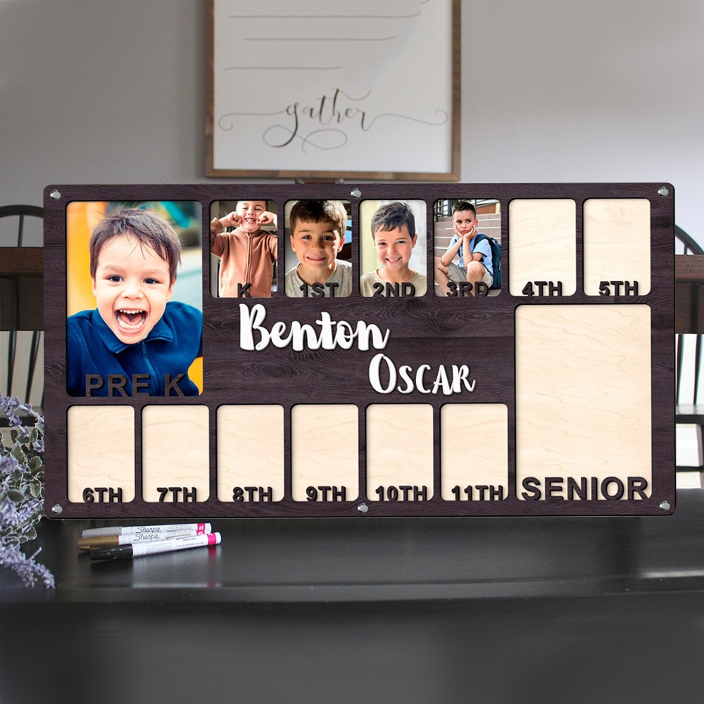 Personalized K-12 School Years Photo Frame Wooden Back to School Sign Gifts For Kids