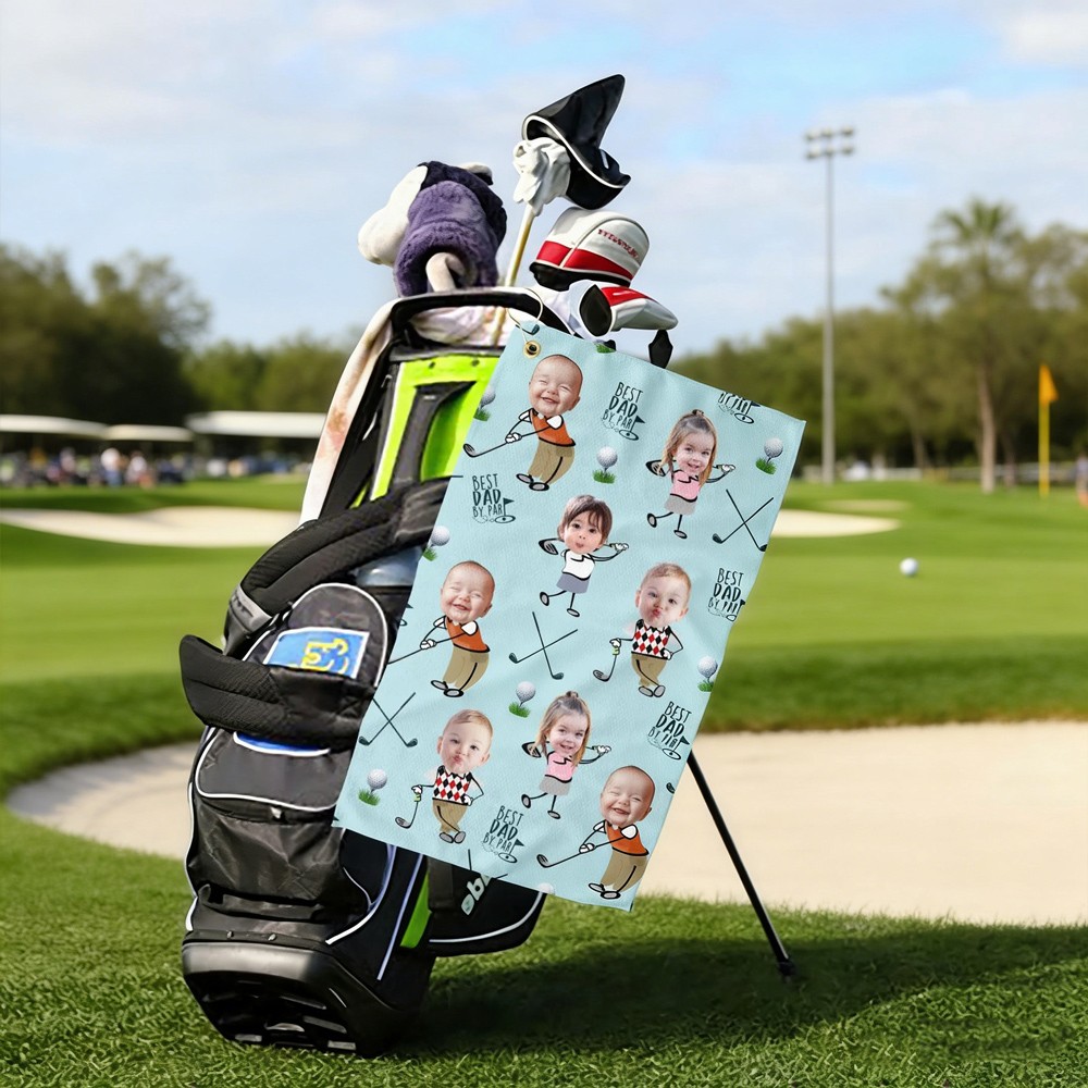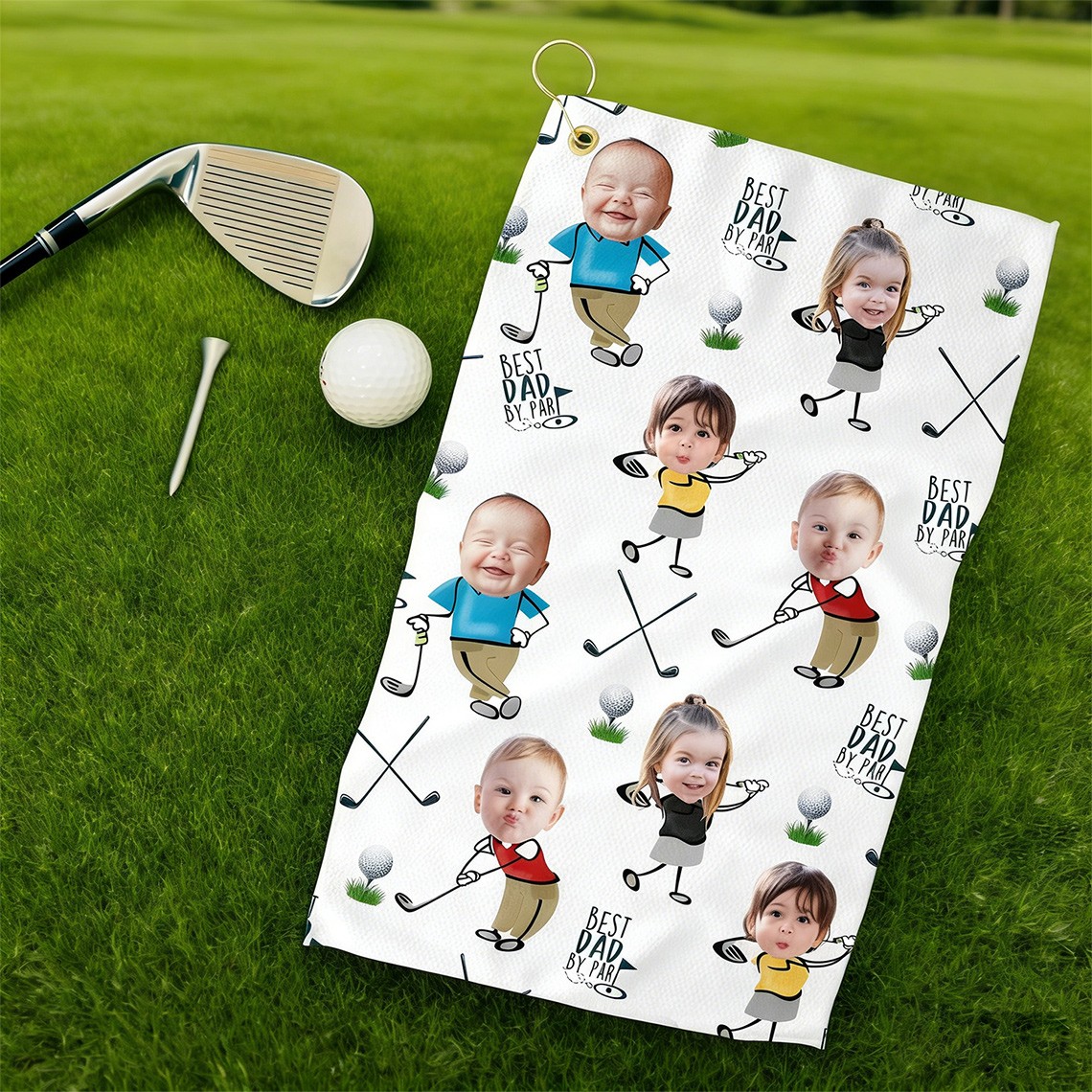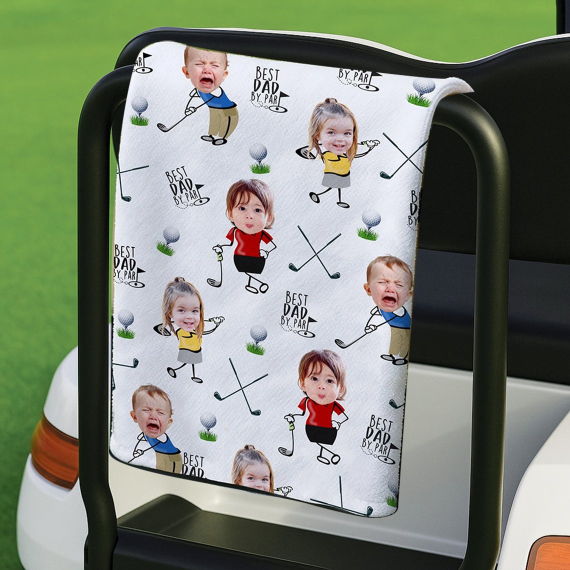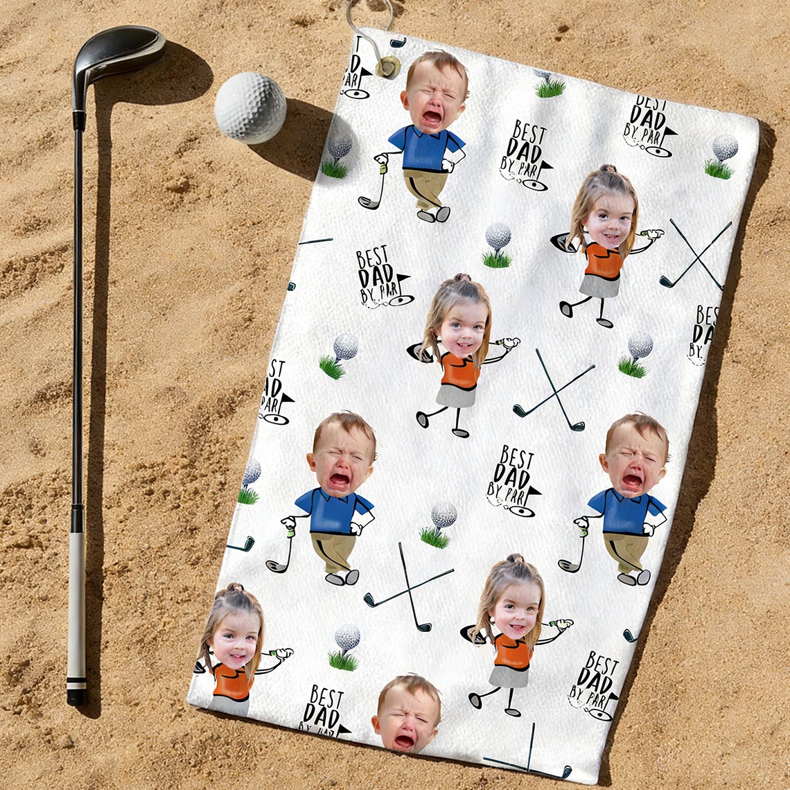 Personalized Kid Face Portrait Golf Towel Best Dad By Par Golf Towel Golf Lover Gifts Unique Gift for Dad Husband