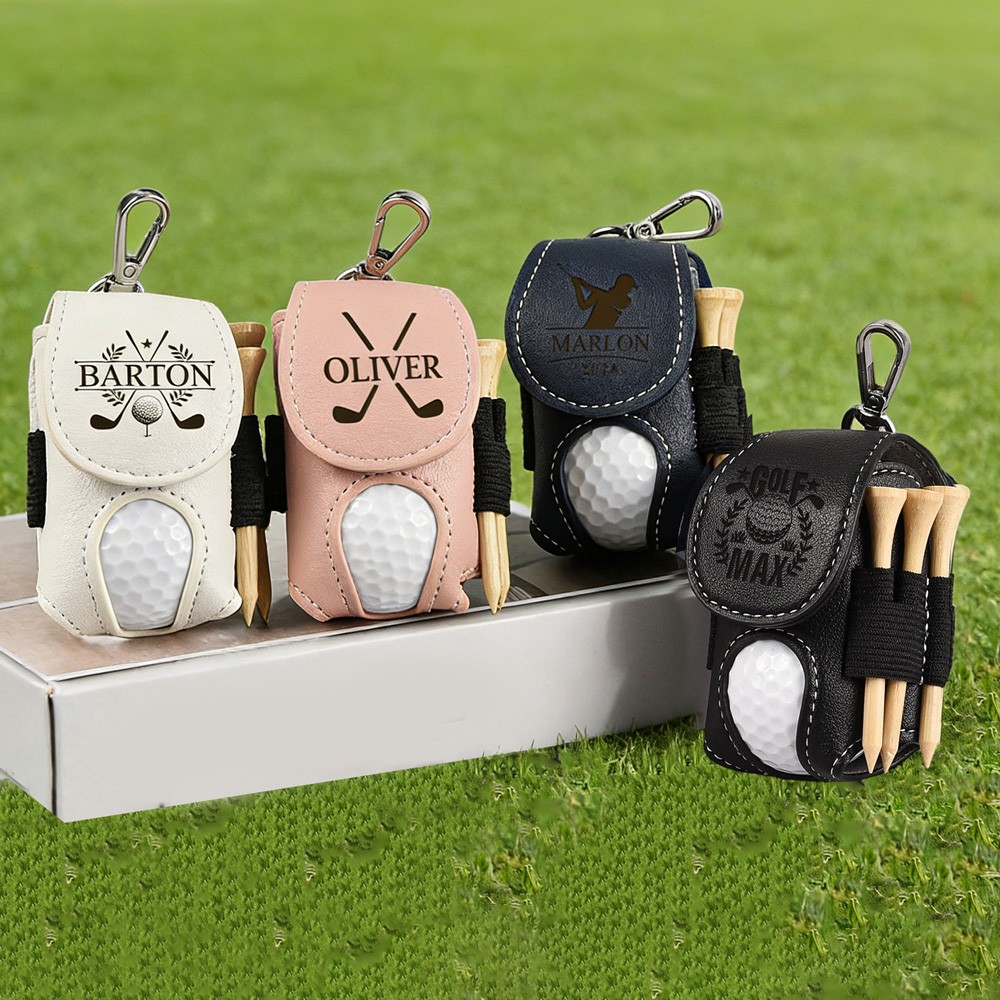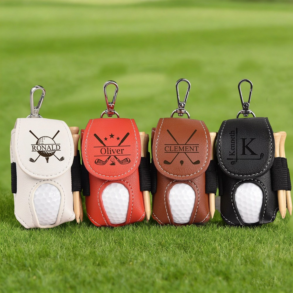 Personalized Leather Golf Ball Bag Holder Golf Accessories For Men Golfer Sports Gifts Birthday Gift for Dad Husband
