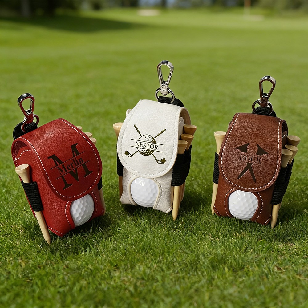 Personalized Leather Monogrammed Golf Ball & Tee Bag Holder Golf Accessories For Men Unique Golf Lover Gifts