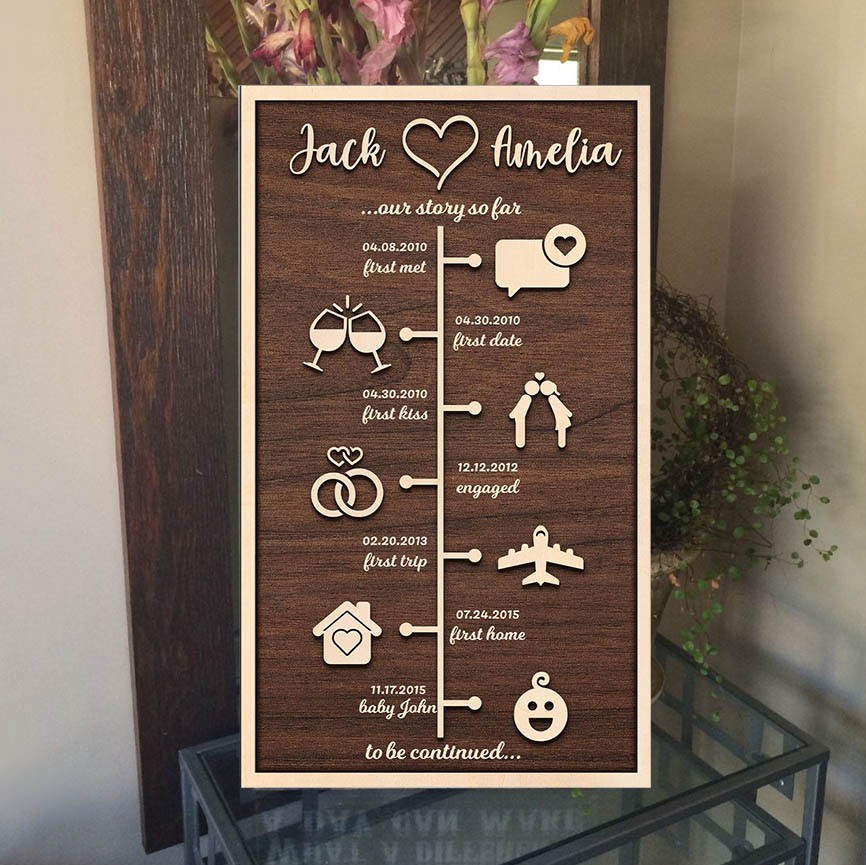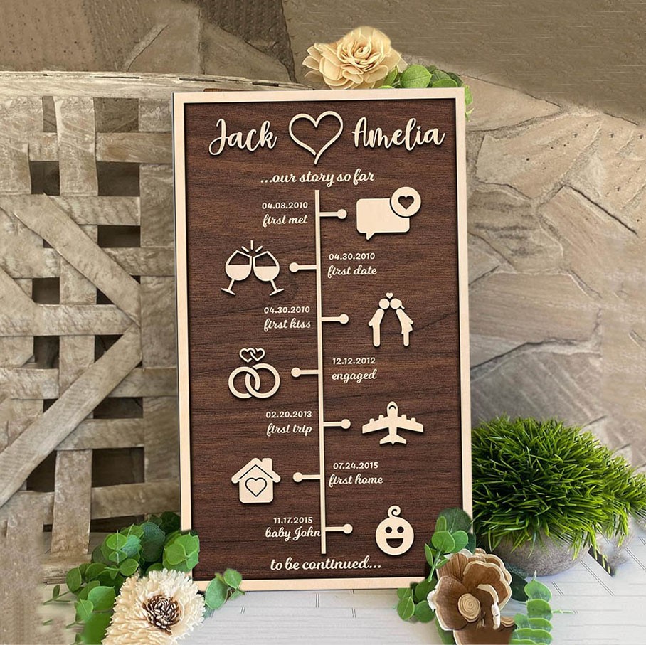Personalized Love Story Timeline Wood Sign Gifts for Couple Anniversary Gift for Wife Husband