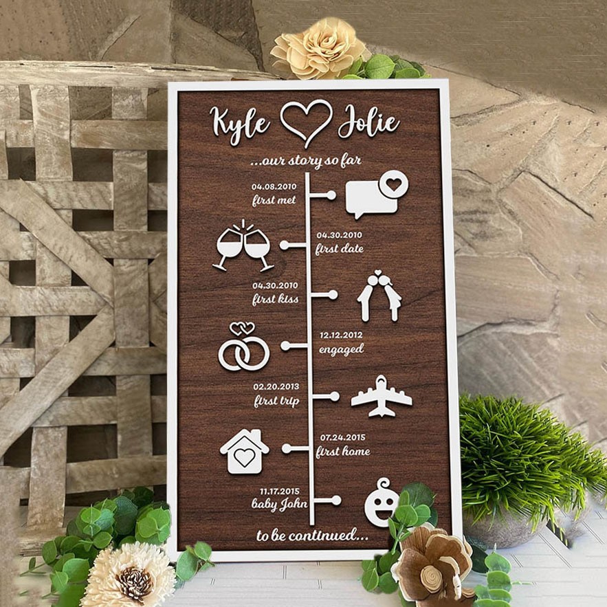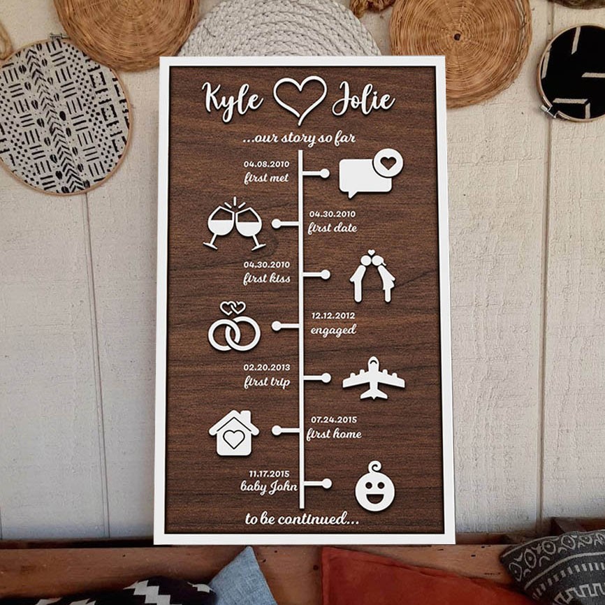 Personalized Love Story Timeline Wood Sign Gifts for Couple Anniversary Gift for Wife Husband
