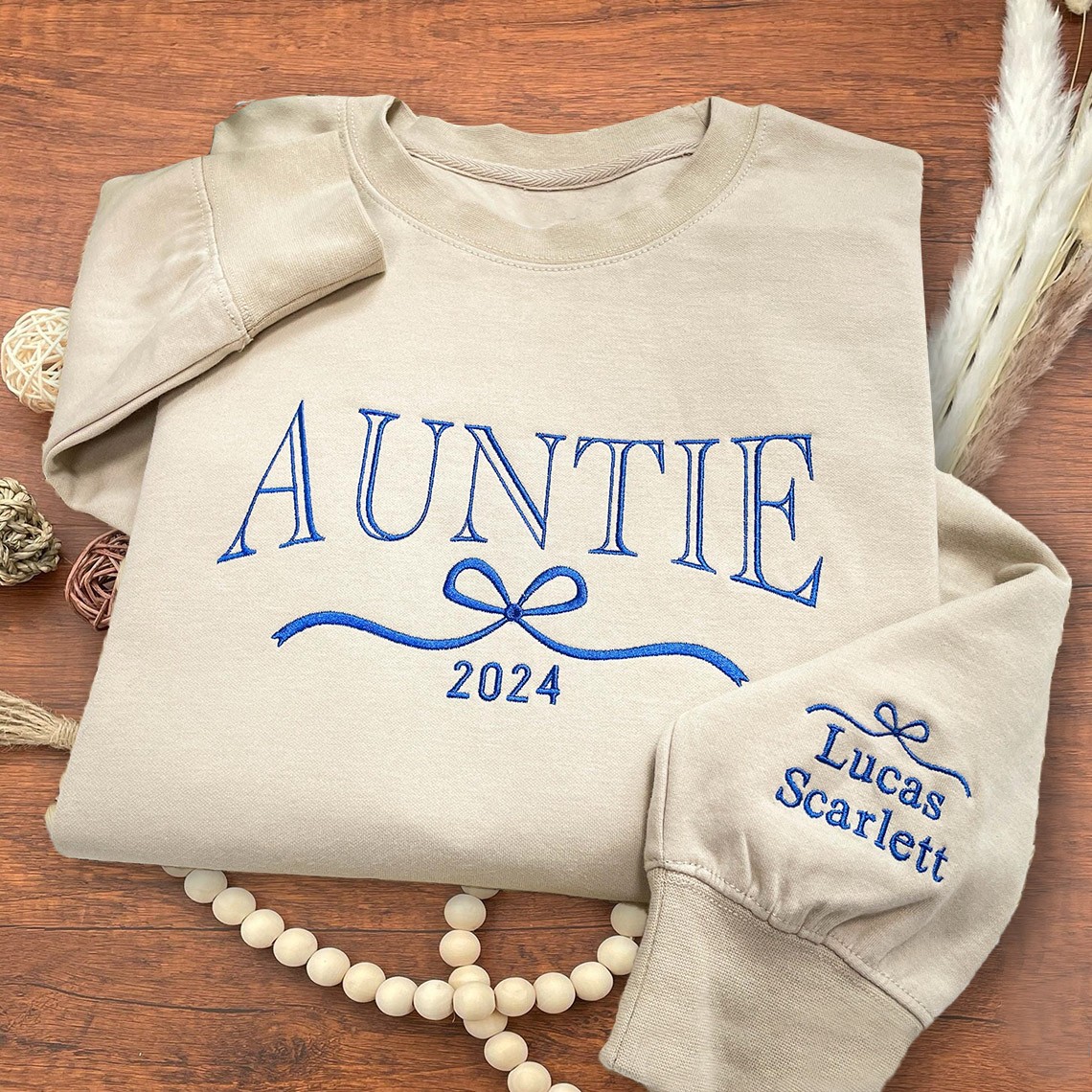 Personalized Mama Embroidered Sweatshirt with Kids Names and Bow on Sleeve New Mom Gift Mother's Day Gift Ideas
