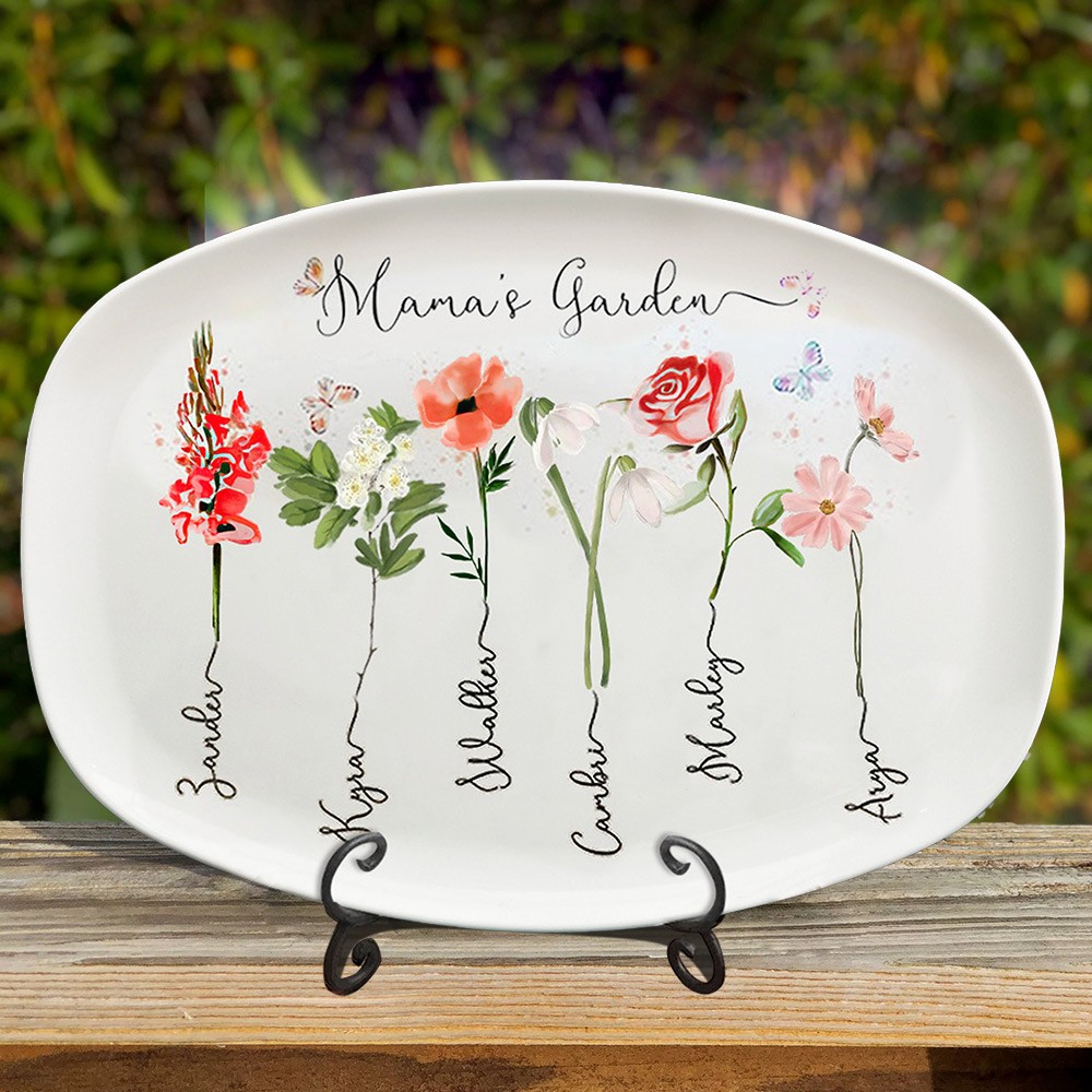 Personalized Mama's Garden Birth Flower Platter with Kids Names Love Gifts for Grandma Mom Mother's Day Gift