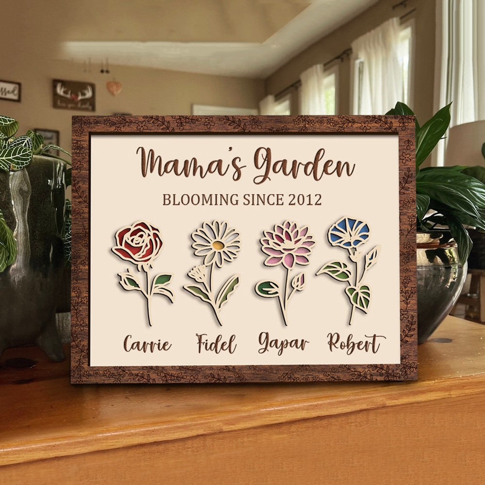 Personalized Mama's Garden Blooming Birth Flower Frame Wood Sign with Names Perfect Gifts for Mom Grandma Mother's Day Gift Ideas