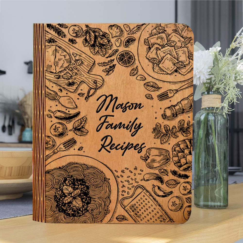 Personalized Mama's Wooden Recipe Book with Blank Binder Family Keepsake Gifts Christmas Gift for Mom Grandma