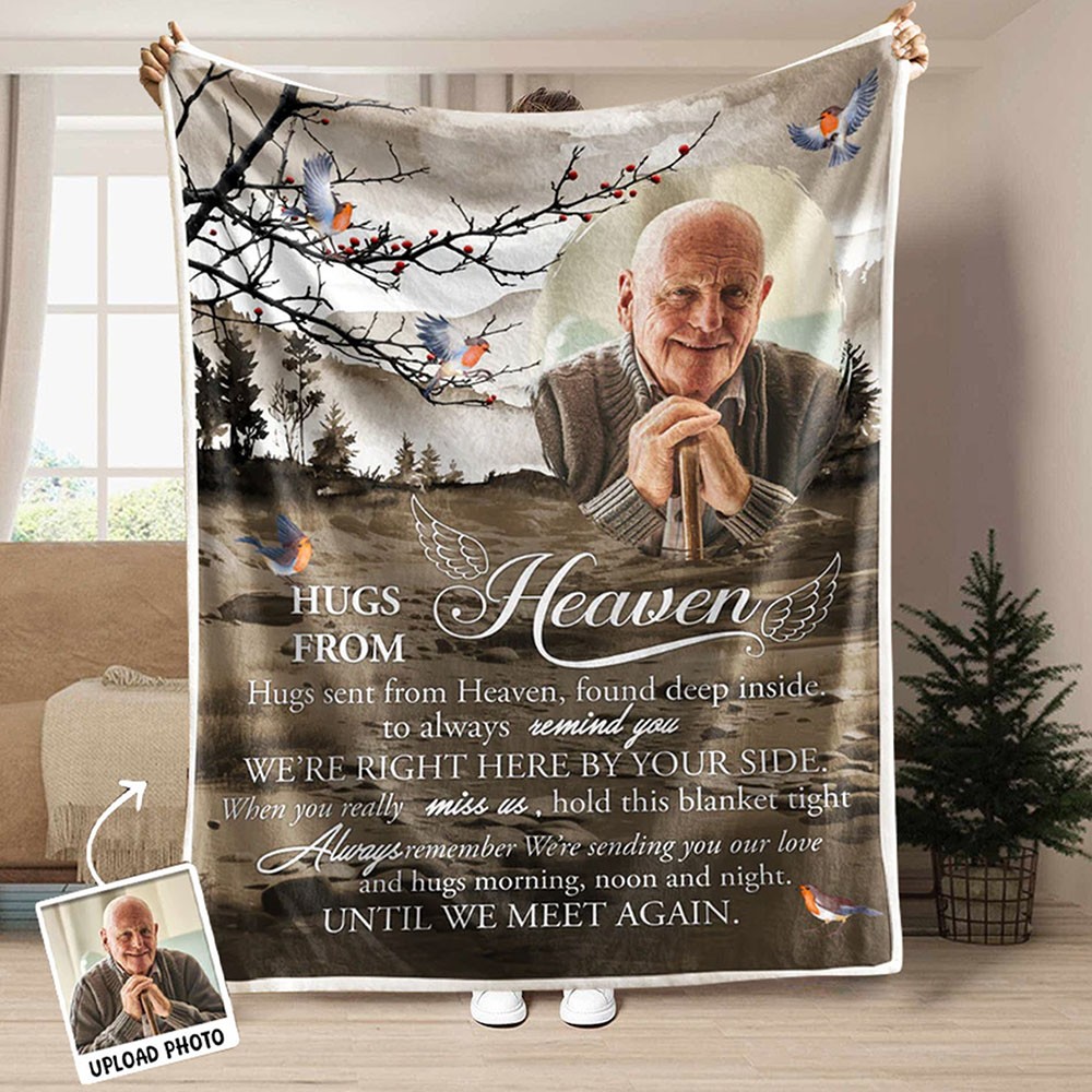 Personalized Memorial Dad Photo Blanket A Hug From Heaven Blanket Remembrance Gift for Loss of Dad Christmas Gift