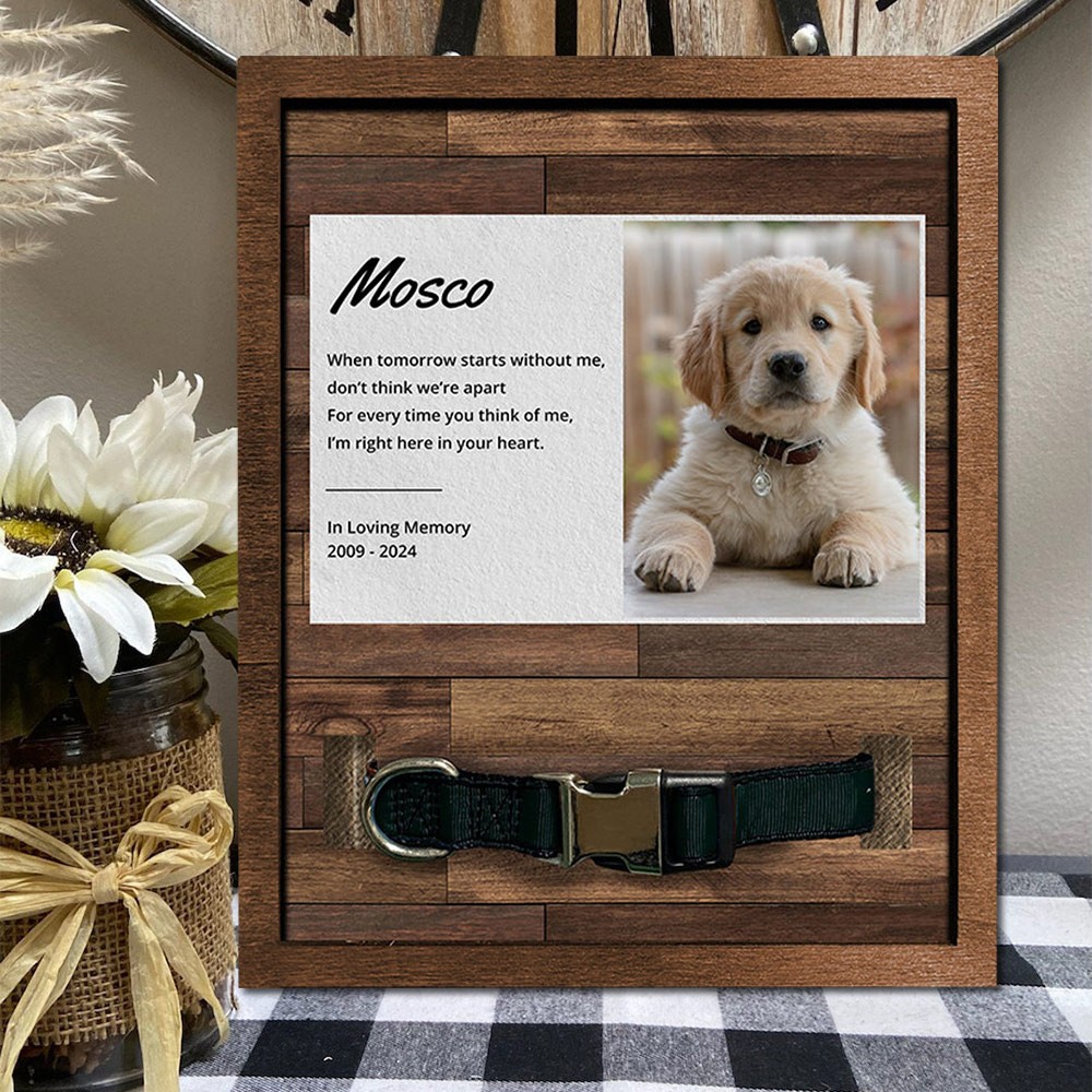 Personalized Memorial Pet Collar Wood Frame with Photo Keepsake Gifts for Pet Lover
