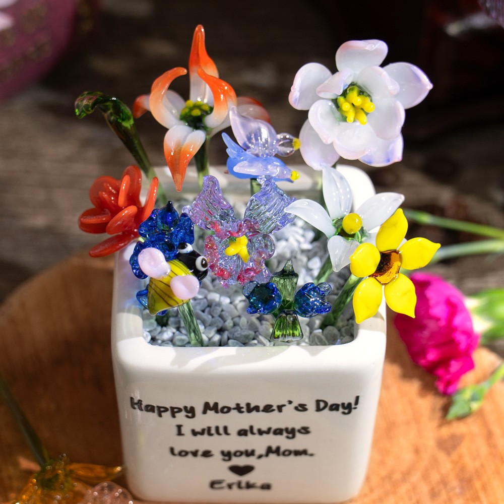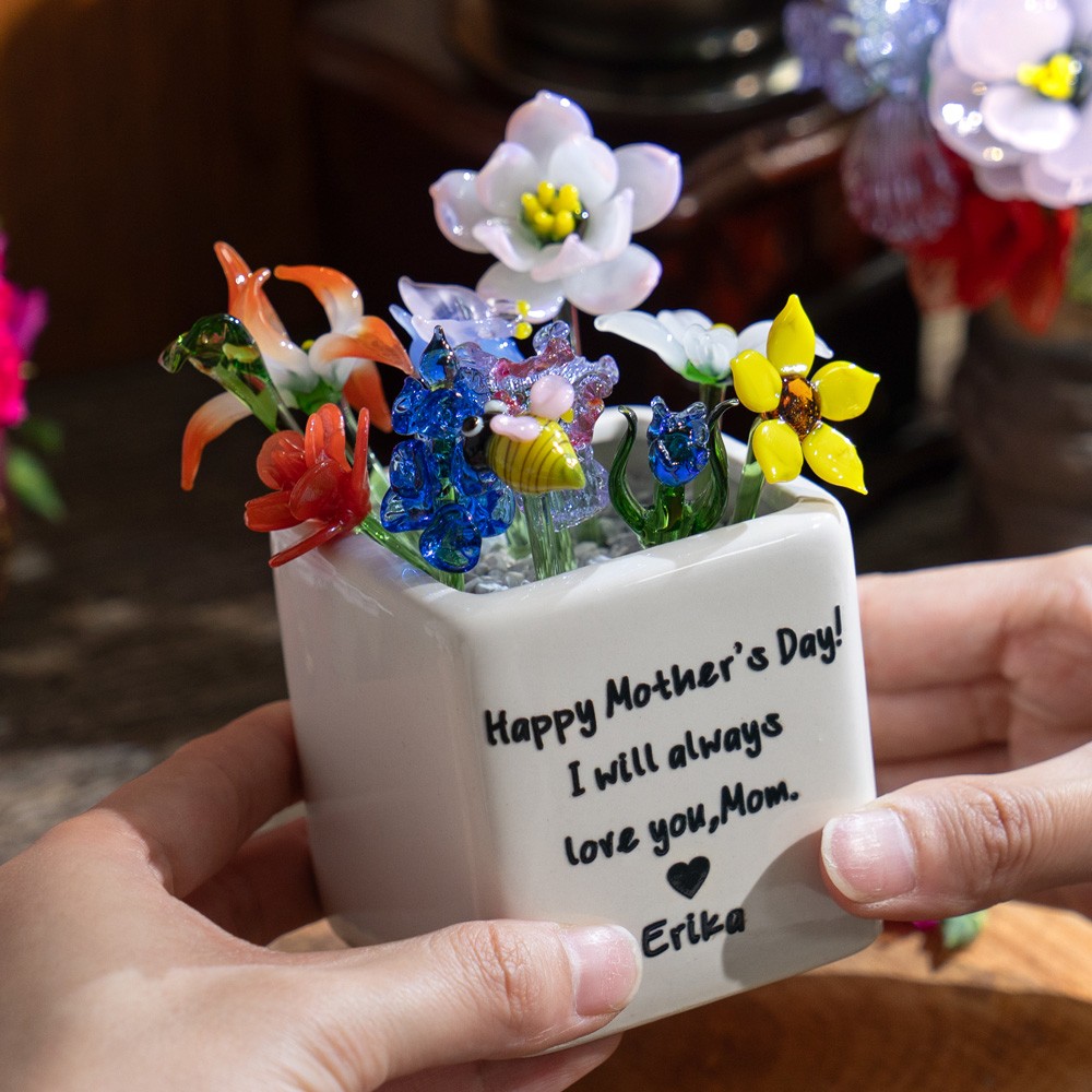 Personalized Mini Glass Birth Month Flower with Plant Pot Keepsake Gifts for Mom Grandma Unique Mother's Day Gift Ideas