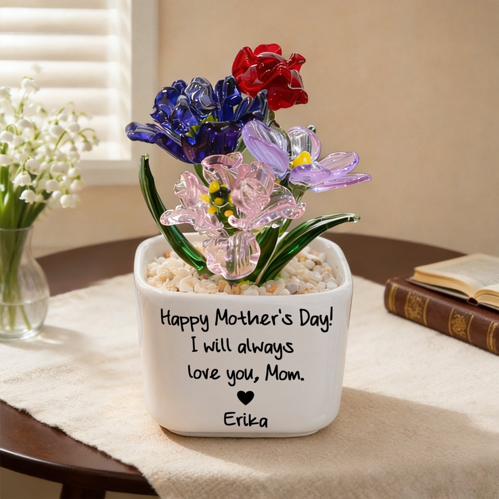 Personalized Mini Glass Birth Month Flower with Plant Pot Perfect Gifts for Mom Grandma Unique Mother's Day Gift Ideas