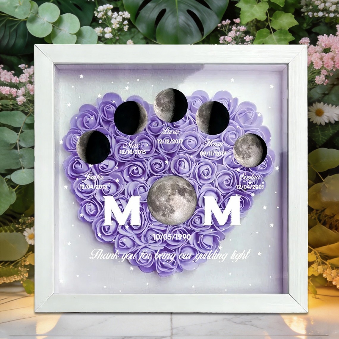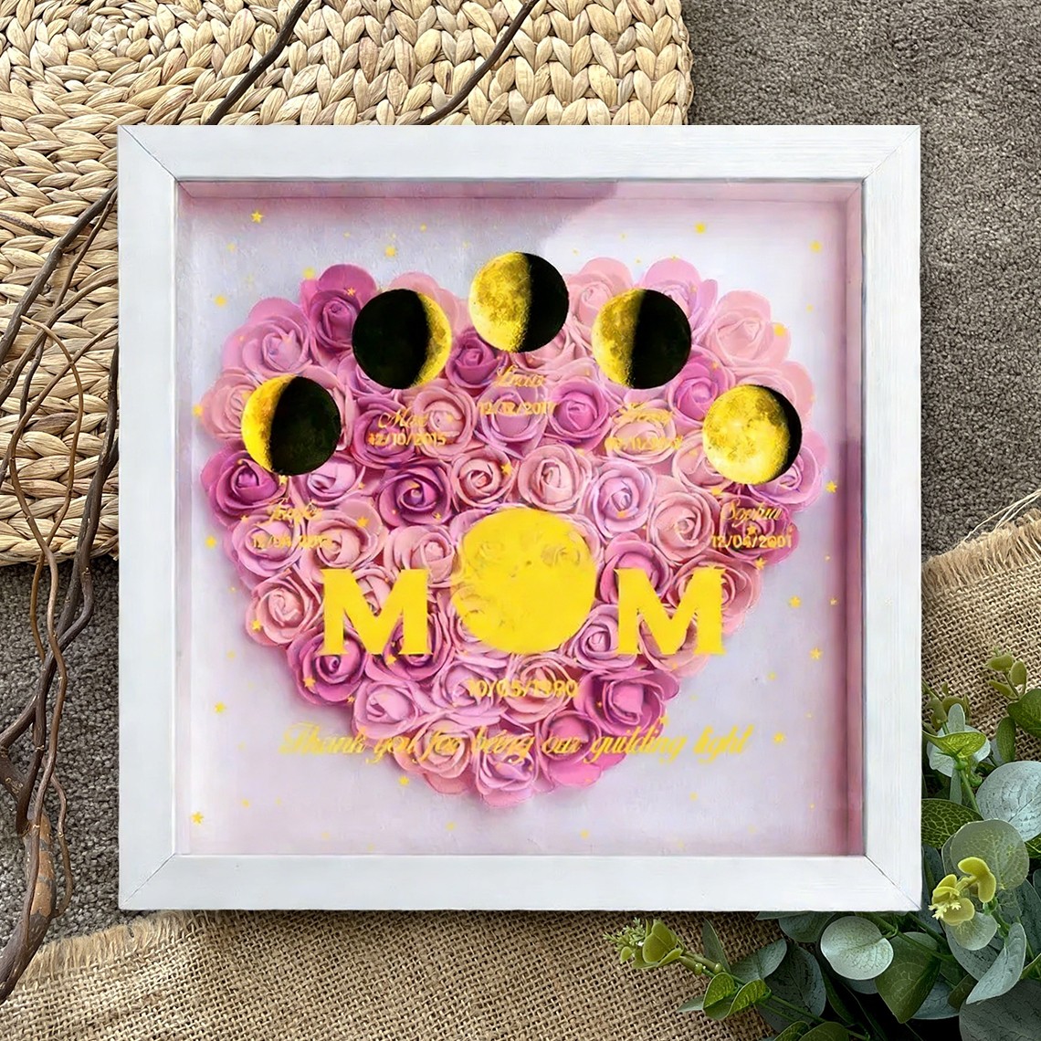 Personalized Mom Flower Shadow Box with Moon Phase Print Keepsake Gifts for Mom Grandma Mother's Day Gift
