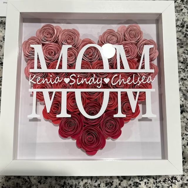 Personalized Mom Heart Shaped Monogram Flower Shadow Box