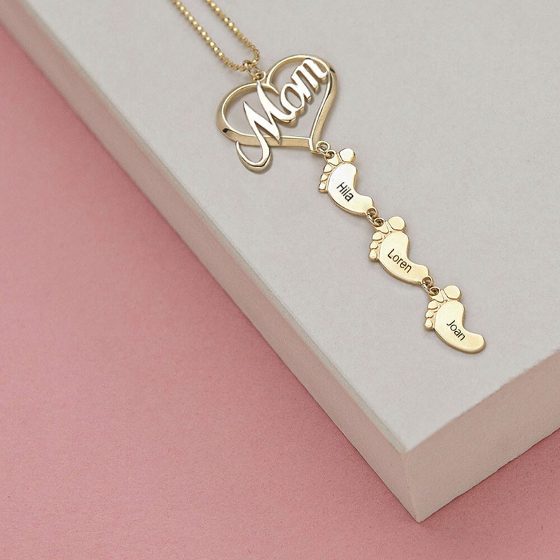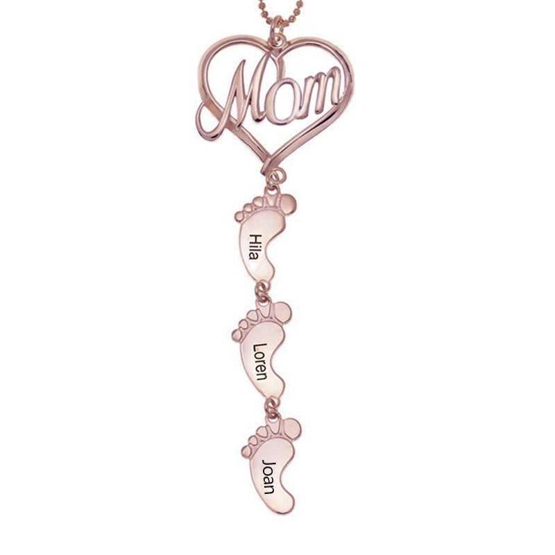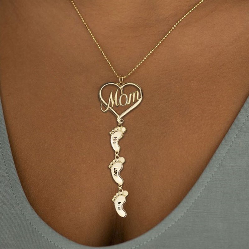 Personalized Mom Necklace With Baby Feet 1-10 Pendants Unique Gift For Mom Grandma