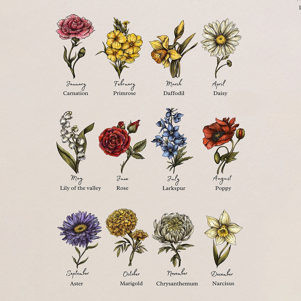 Personalized Mom's Garden Birth Flower Bouquet Frame with Kids Names Keppsake Gifts for Mom Grandma Christmas Gift