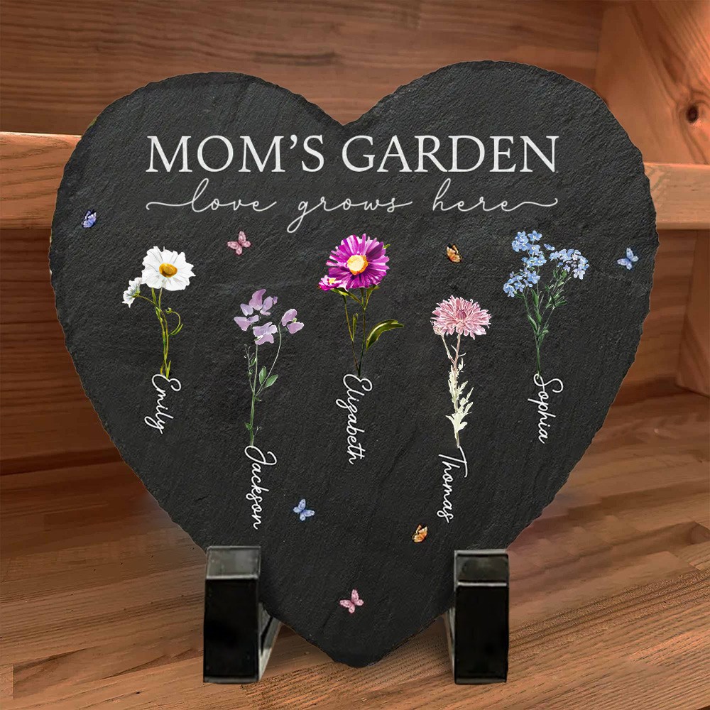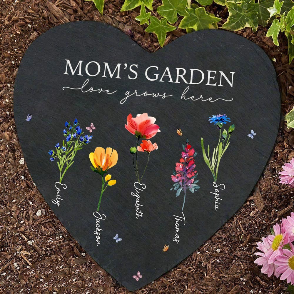 Personalized Mom's Garden Birth Flower Plaque with Kids Names Unique GIft for Mom Grandma Christmas Gift
