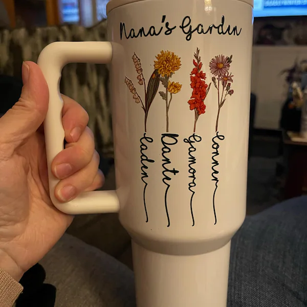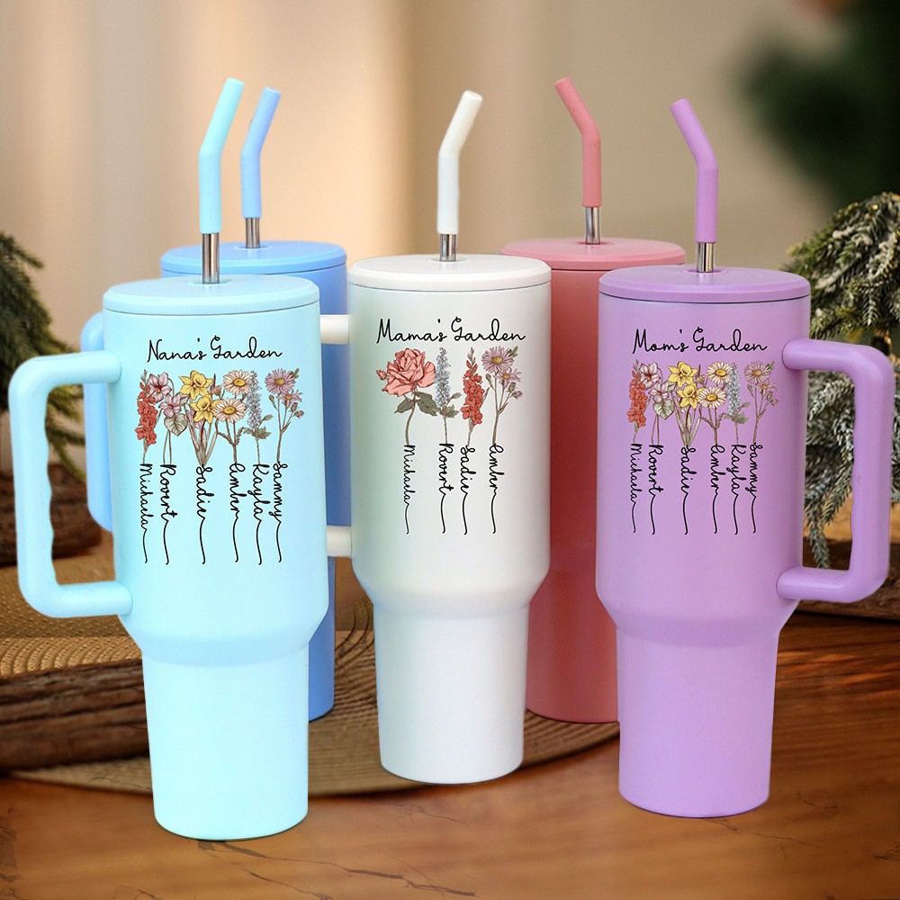 Personalized Mom's Garden Birth Month Flower Tumbler with Kids Names Love Gift for Mom Grandma Mother's Day Gift Ideas