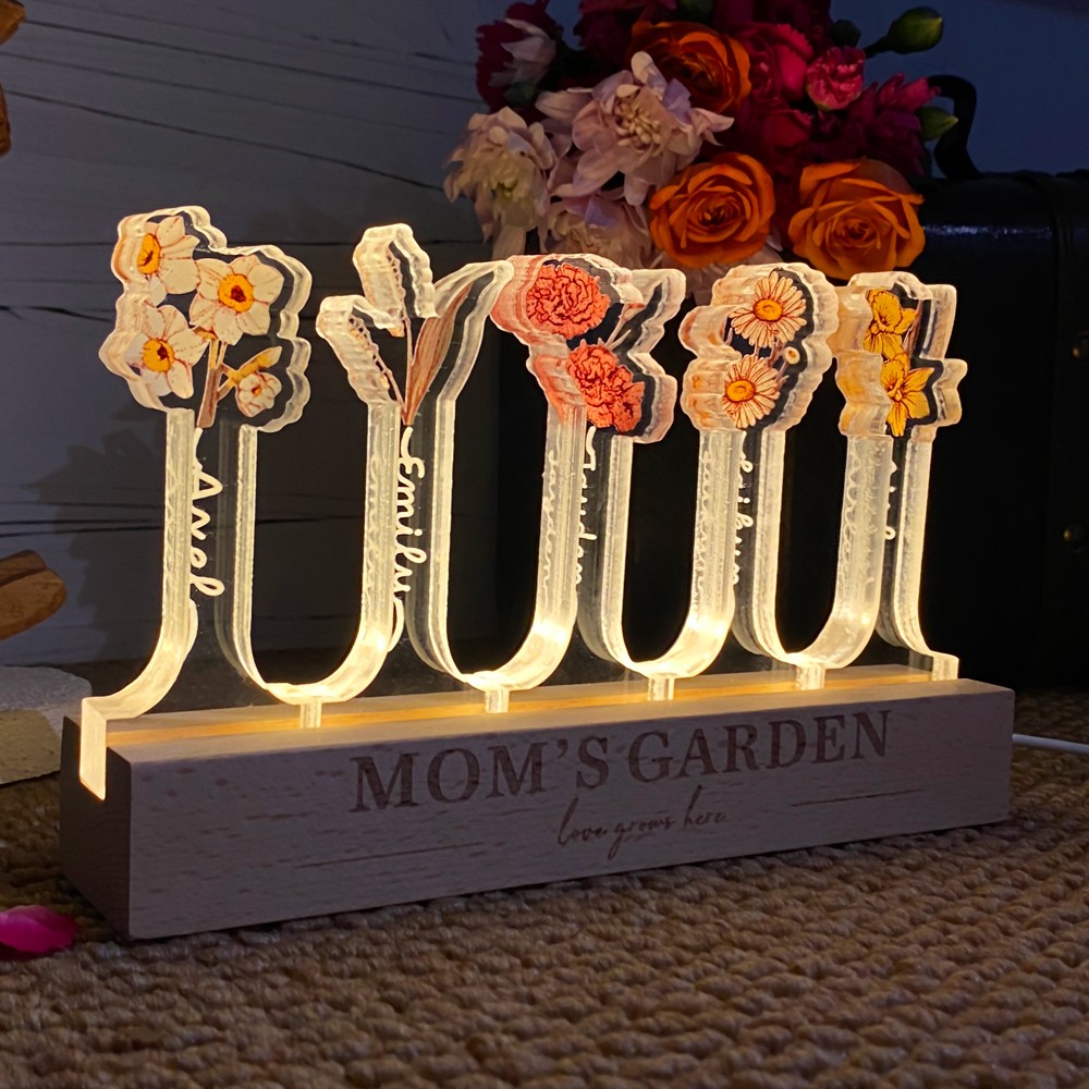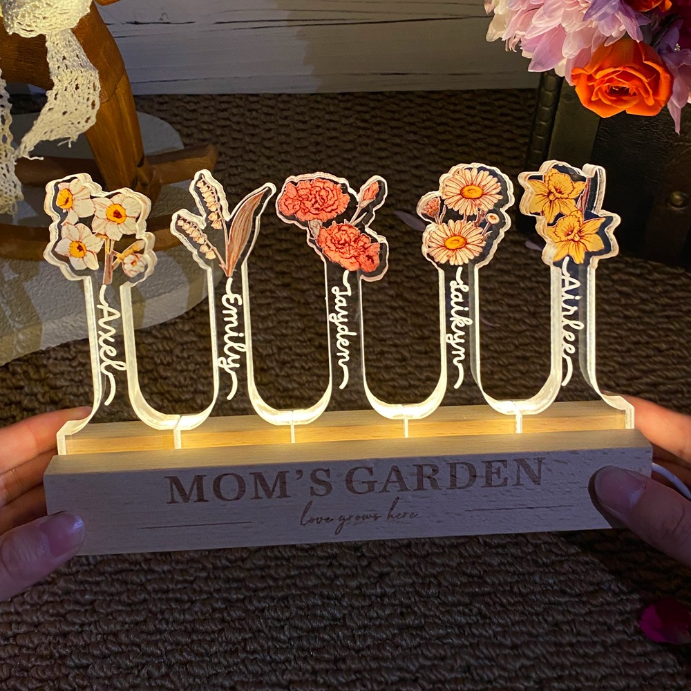 Personalized Mom's Garden Love Grows Here Birth Flower Night Light With Kids Names Family Gifts for Mom Grandma Unique Mother's Day Gift