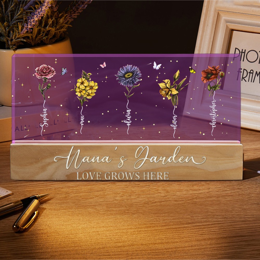 Personalized Mom's Garden Love Grows Here Birth Flower Wood Night Light Unique Gift for Mom Grandma Christmas Gift