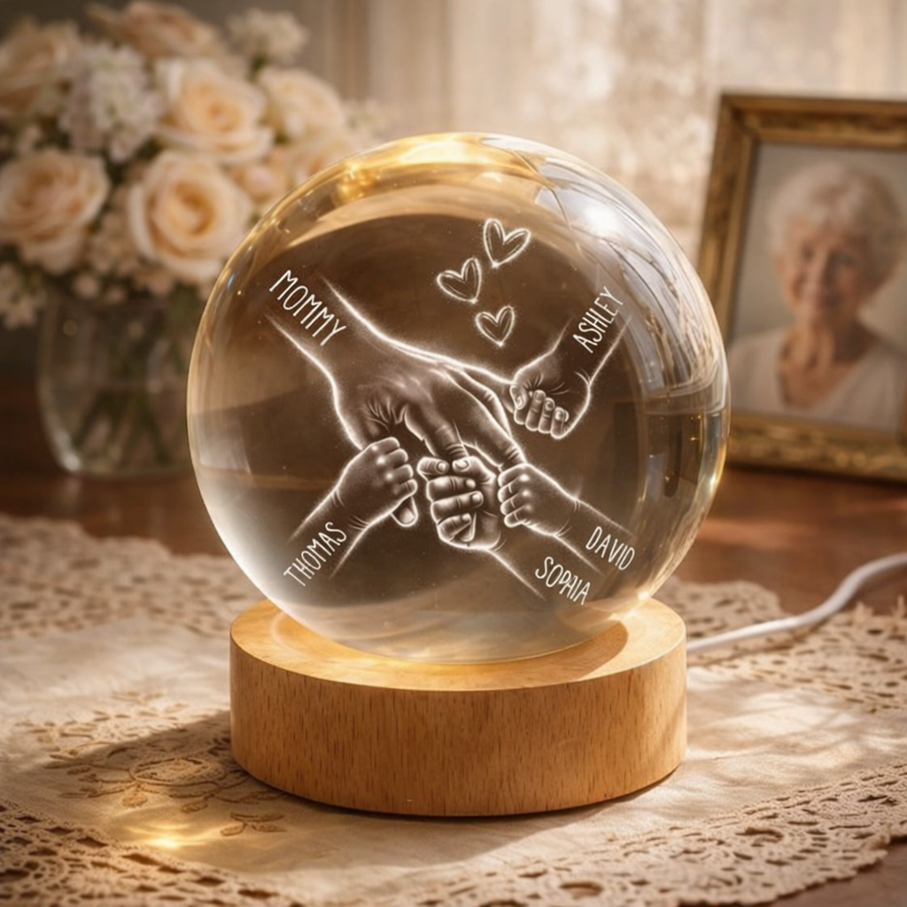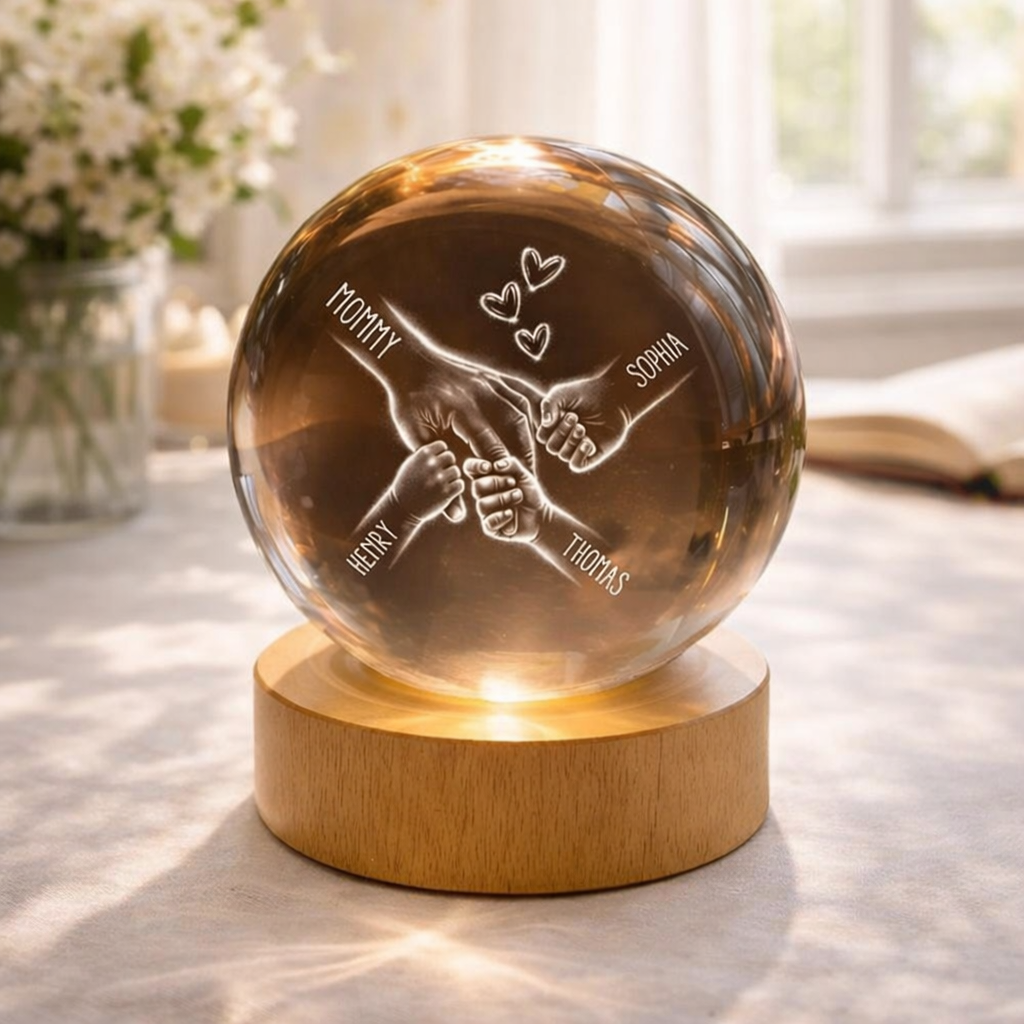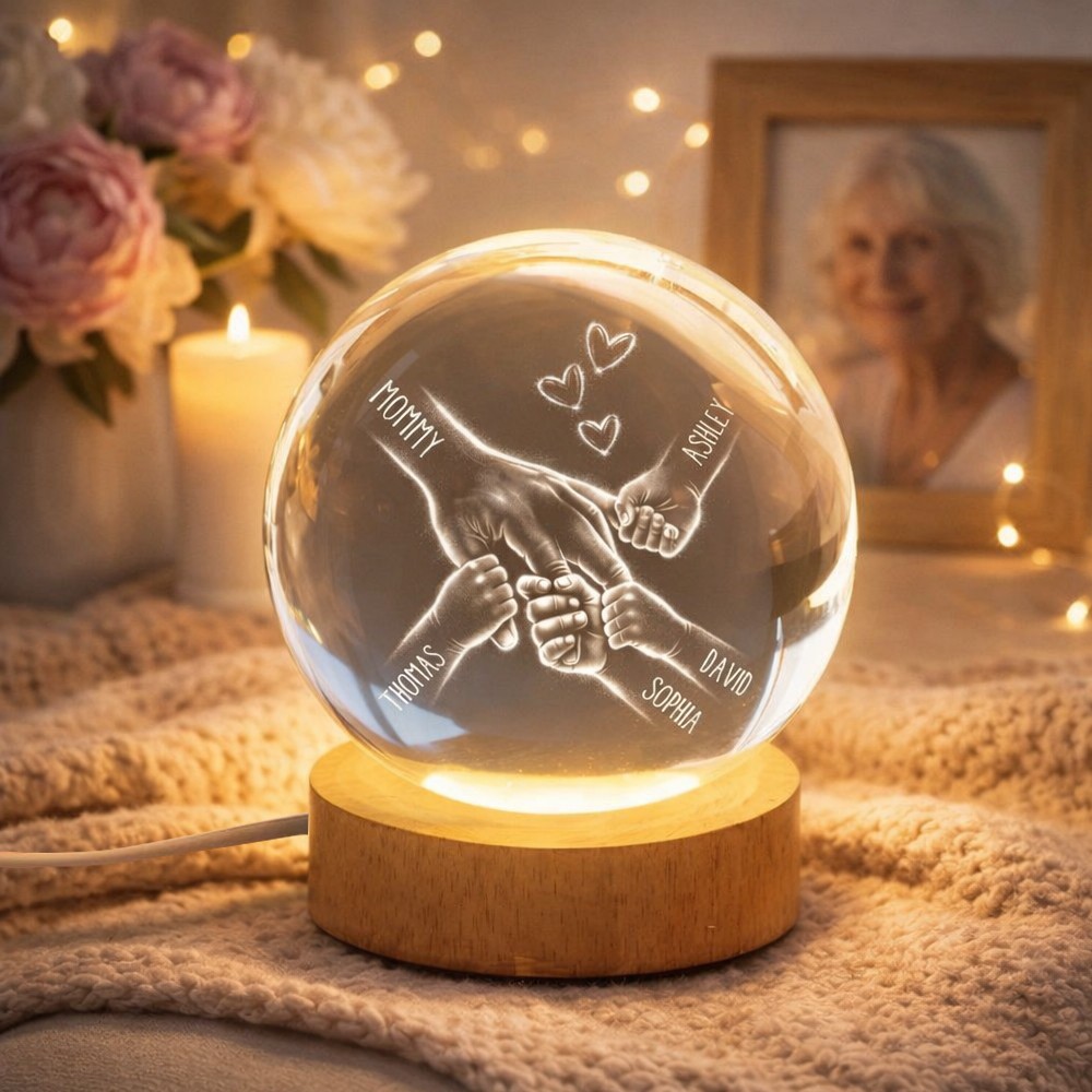 Personalized Mommy And Kids Holding Hands Crystal Ball LED Night Light Mother's Day Gifts