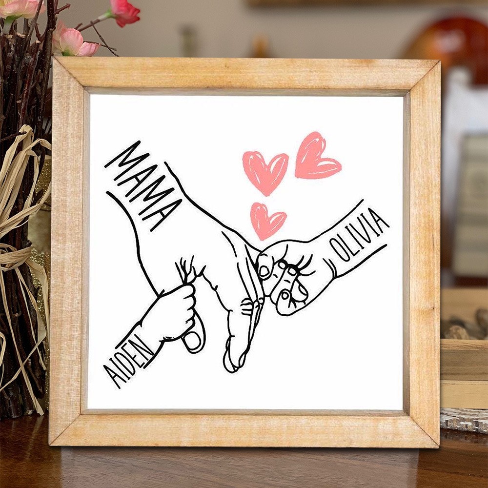 Personalized Mommy Holding Hands Wood Sign with Kids Names Gifts for Mom Grandma Mother's Day Gift