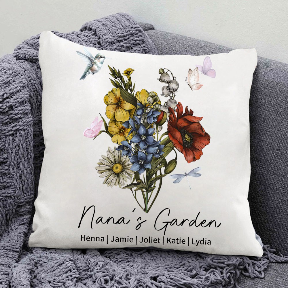 Personalized Mom's Garden Birth Flower Bouquet Pillow