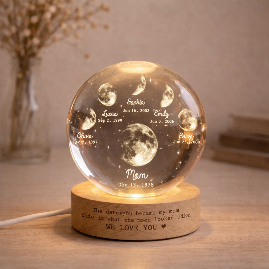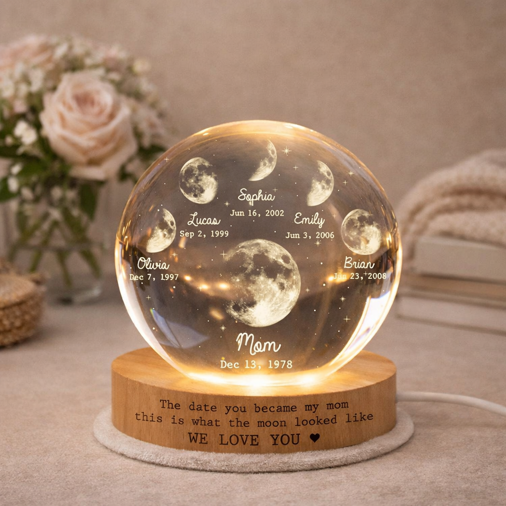 Personalized Moon Phase By Date Crystal Ball LED Night Light With Kids Name Mother's Day Gift