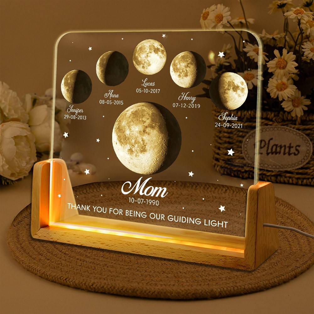 Personalized Moon Phase Night Light By Date with Kids Names Keepsake Gifts for Mom New Mom Gift Mother's Day Gift Ideas
