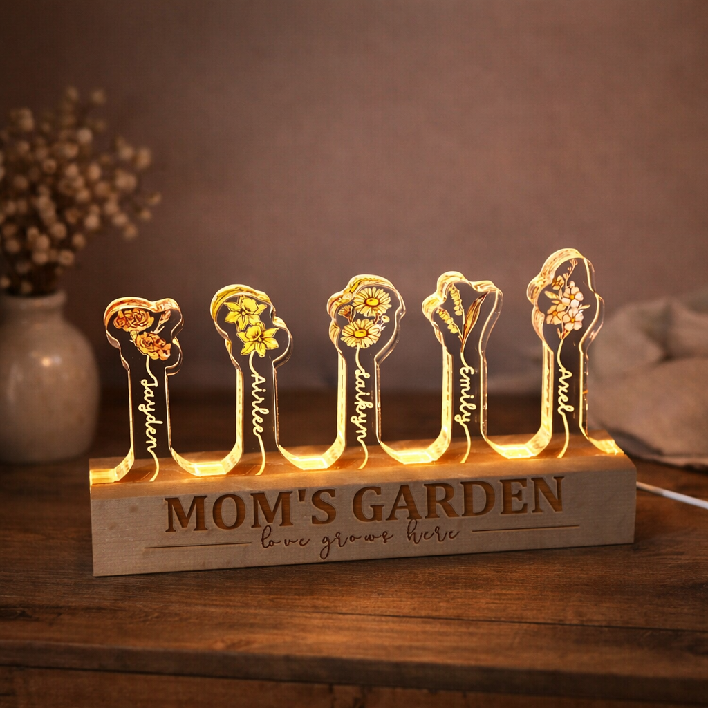Personalized Nana's Garden Birth Flower Night Light With Kids Names Unique Keepsake Gifts for Mom Grandma Mother's Day Gift