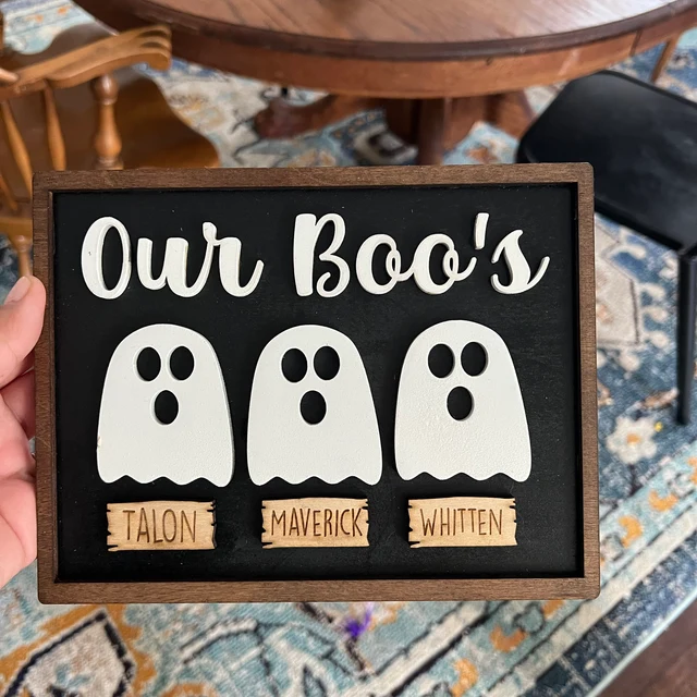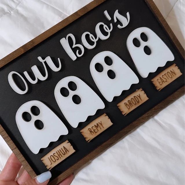 Personalized Our Boo's Family Halloween Ghost Wood Sign with Names Halloween Gift