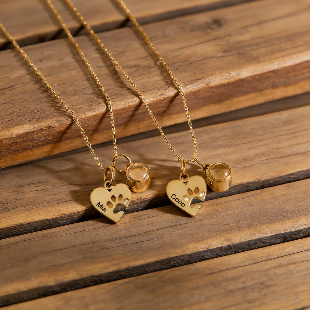 Personalized Paw Name Photo Projection Necklace with Heart Pet Memorial Gift Keepsake Gifts for Dog Mom Pet Lover Gift