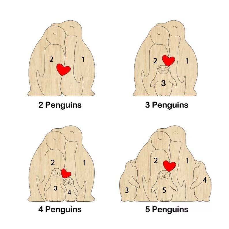 Personalized Penguin Family Puzzle Wooden Sign With Names Unique Gift For Family Mother's Day Gift Ideas
