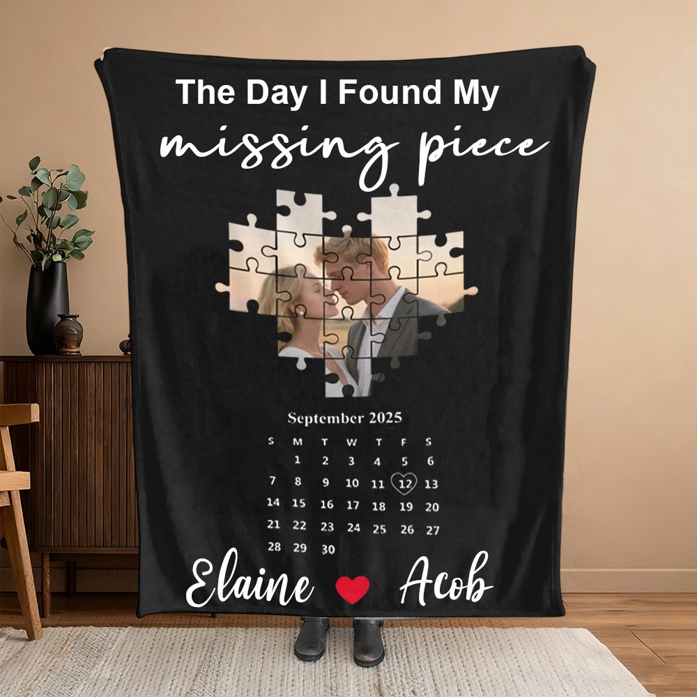 Personalized Photo Calendar Blanket for Couple The Day I Found My Missing Piece Anniversary Gift Valentine's Day Gifts for Her Him